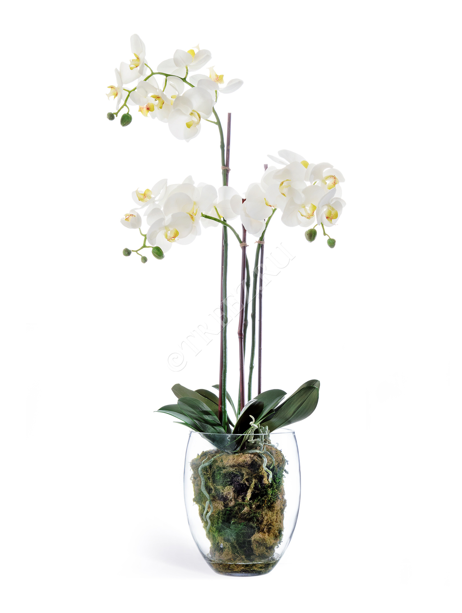 Орхидея Фаленопсис белая с мхом, корнями, землёй