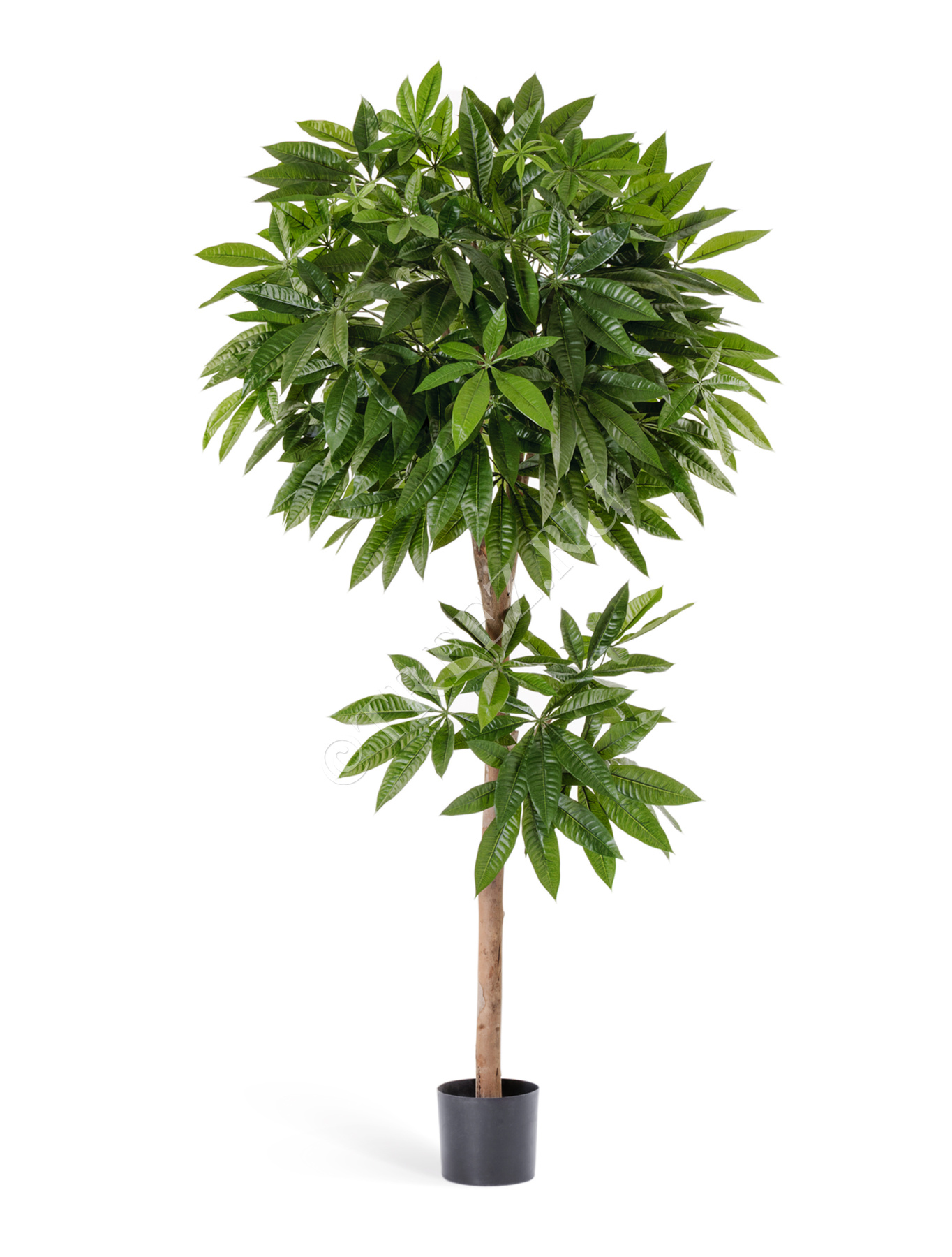 Дерево Пахира - имеет большие листья, похожие на большой цветок или открытую ладонь отличное решение, если Вам необходимо что-то необычное, но в то же время не очень экзотичное. Растение имеет пышную округлую крону немного шарообразную. Красивые листья точно привлекут внимание к этому дереву, оно отлично впишется в Ваш интерьер и даст хороший зелёный акцент. Качество растения позволит Вам поместить его в любом месте, даже в непосредственной близости от глаз.
