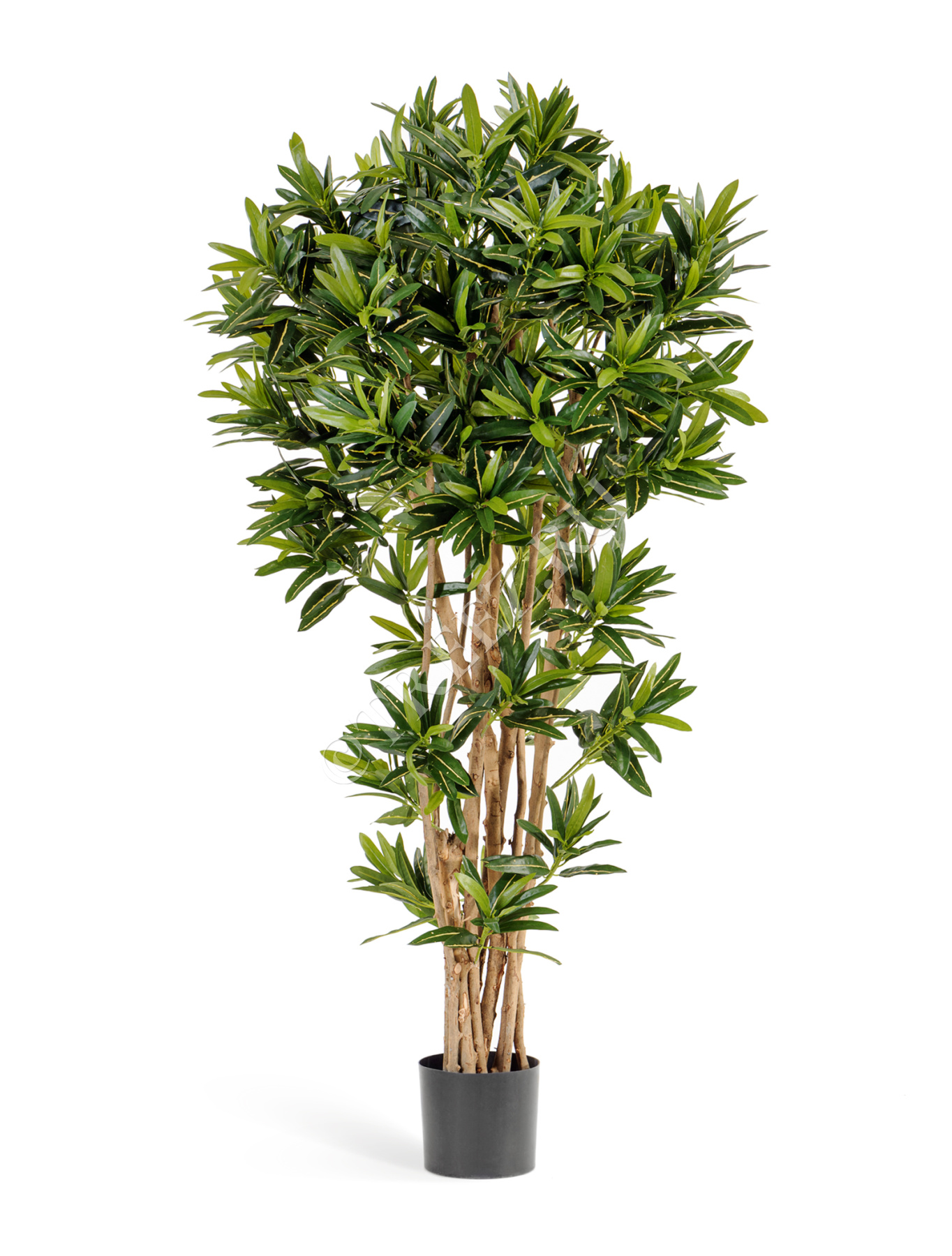 Кротон Голдфингер - красивое растение с пышной кроной, с необычными узкими прямыми зелёными листьями и с тонкими жёлтыми прожилками в центре. Оно поможет создать у Вас в интерьере красивый зелёный акцент. Растение не стандартное, очень интересное. Вы можете посадить его в низкое или высокое кашпо на Ваш выбор. Красивые листья точно привлекут внимание к этому дереву и придадут интерьеру яркости. Качество растения позволит Вам поместить его в любом месте, даже в непосредственной близости от глаз.
