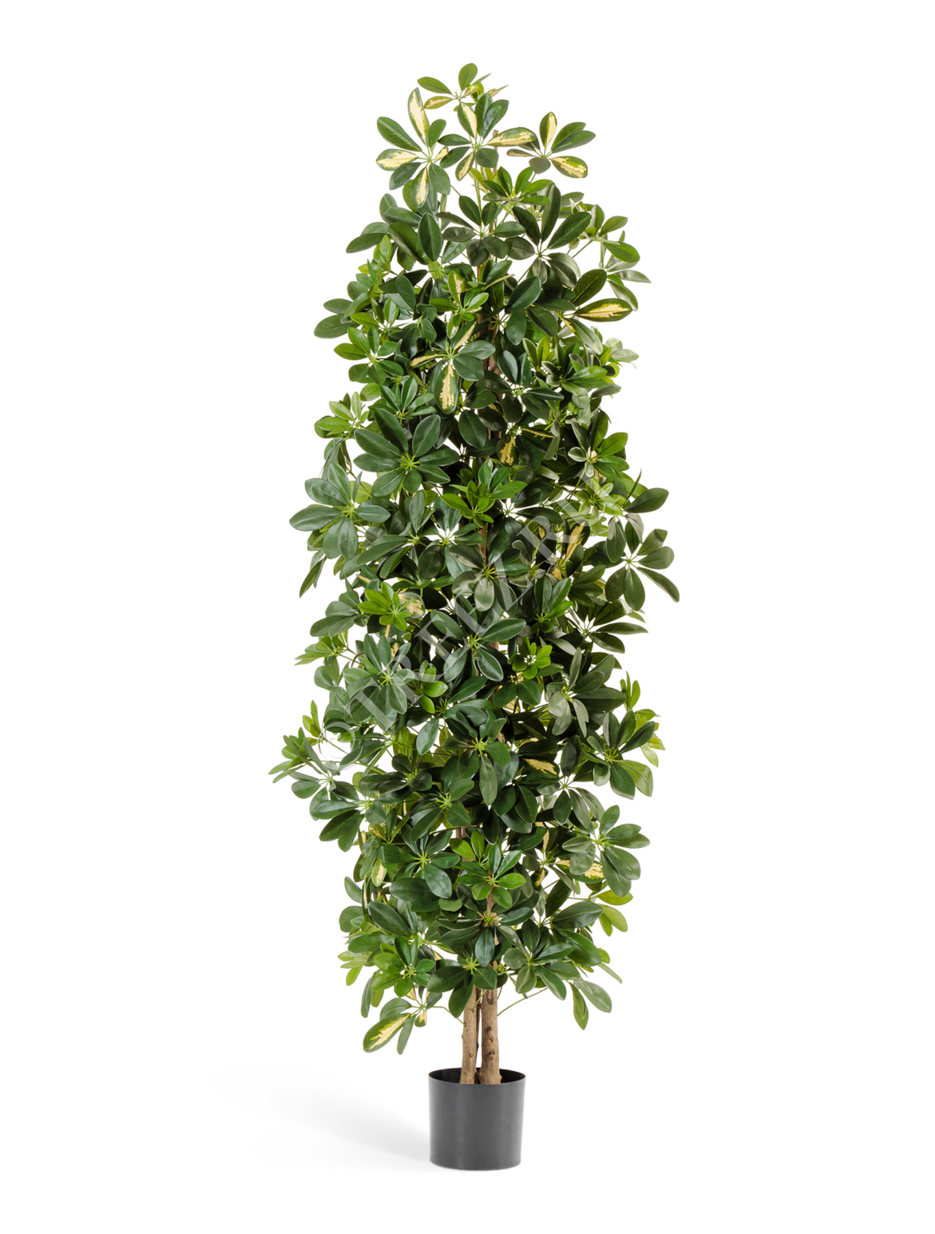 Шеффлера колонновидная - имеет интересные необычные крупные листья, похожие на большие раскрытые цветы или ладонь. Ее колонновидная форма позволит Вам поставить это растение в любое место, т.к. оно компактное и вытянутое. Но из-за того, что оно высокое у Вас не создастся впечатление, что Вам мало зелени. Оно достаточно объёмное и красивое. Качество растения позволит Вам поместить его в любом месте, даже в непосредственной близости от глаз.