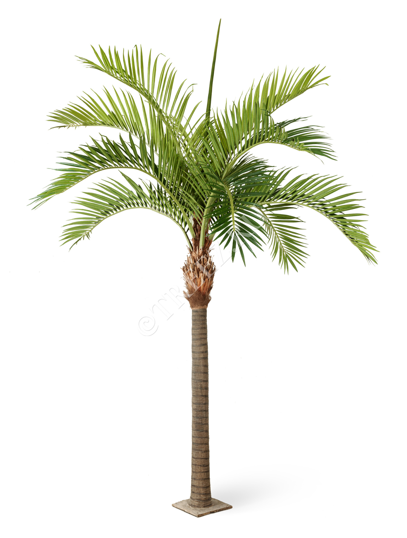 Длина ствола от пола до начала первых листьев без подставки-239см, с подставкой-241см Высота головы (койры)-110см; длина листа-170см. Диаметр ствола: низ-42см, верх-около 20см. Вес ствола-70кг, головы-16кг, листьев-24кг Основание - металлическая площадка 60х60 см.