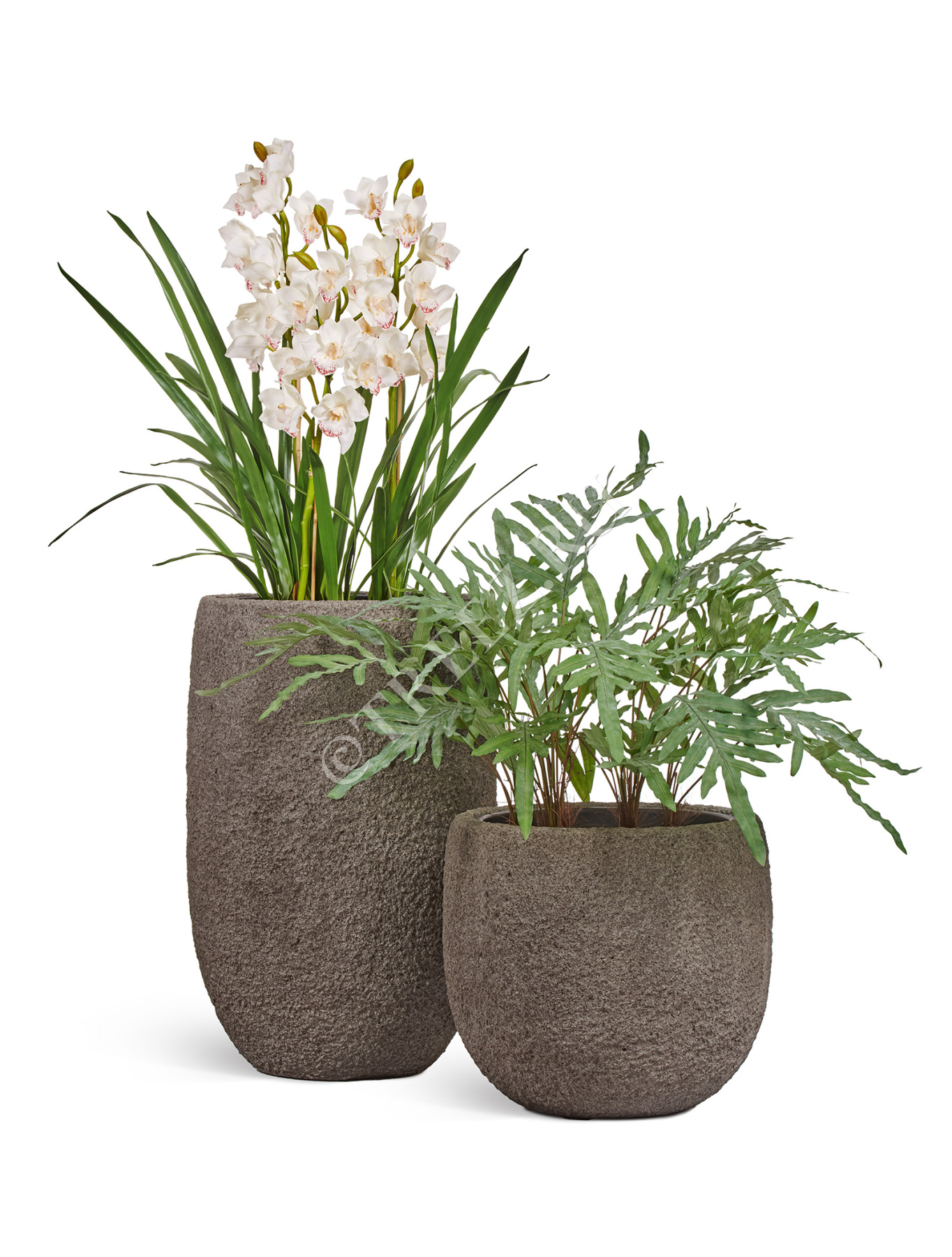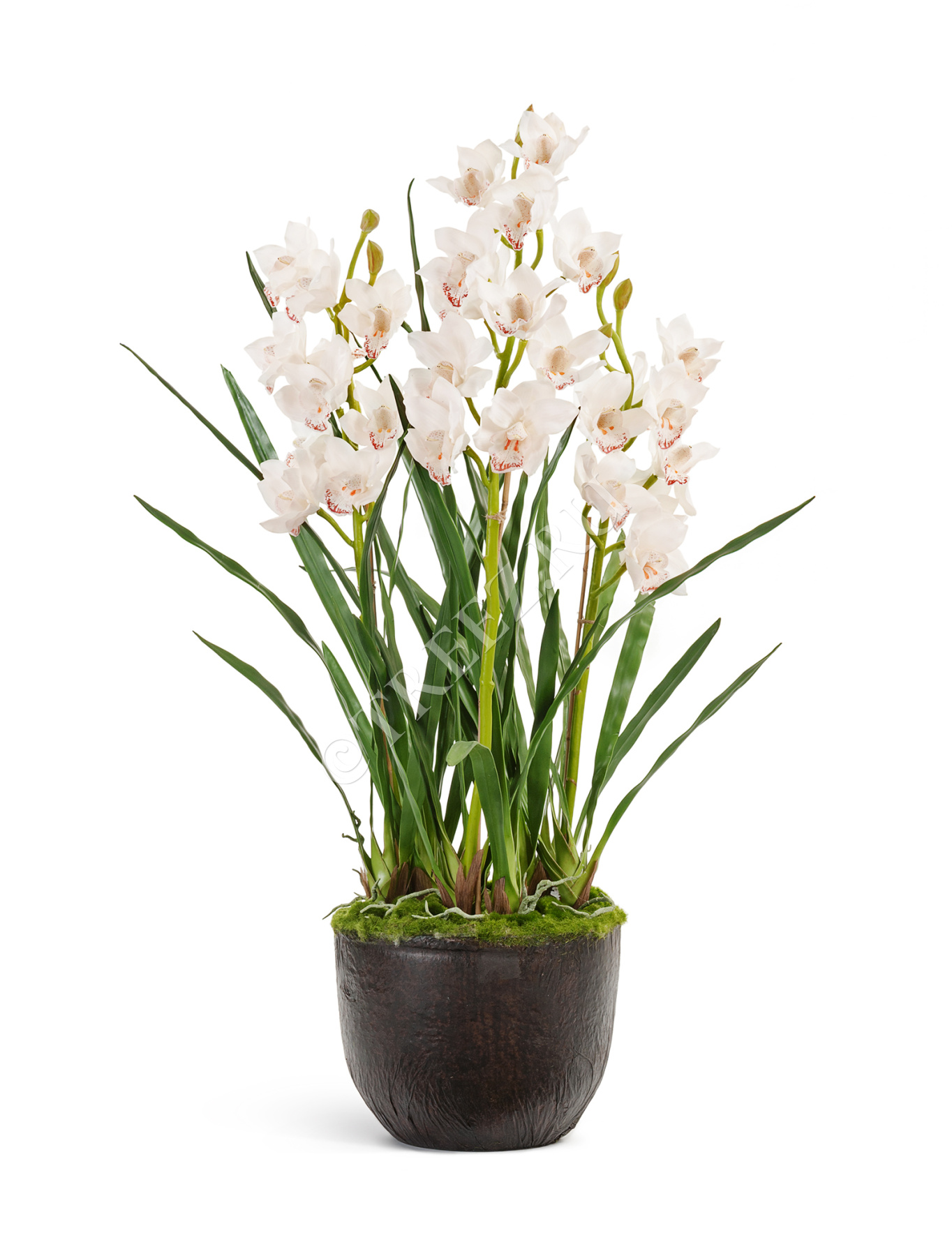Орхидея Цимбидиум куст белый 3 ветки с имитацией земли (без кашпо)