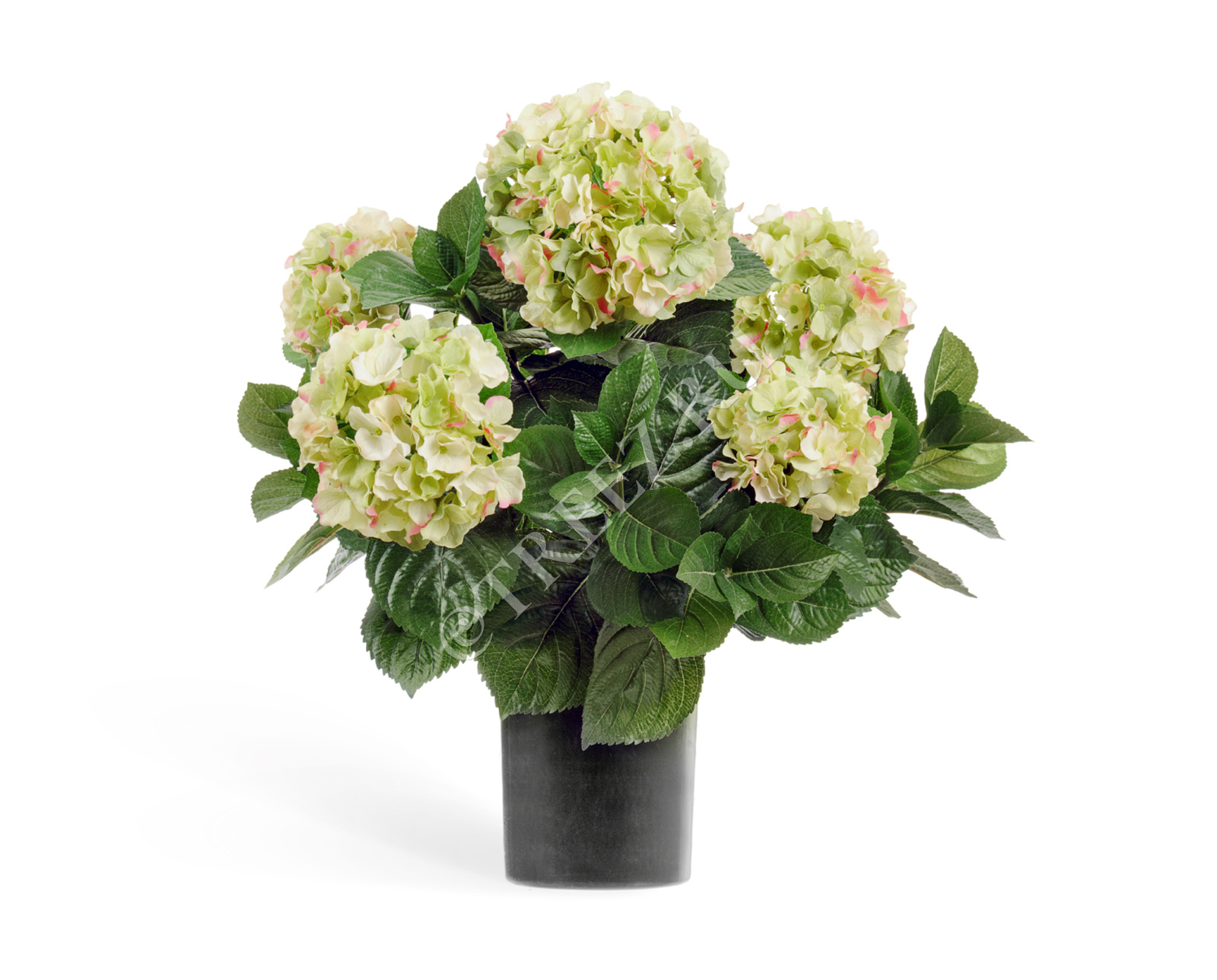 Цветущий куст Гортензии - отличное решение, если Вам необходимо что-то необычное, яркое, но не большое. Растение имеет интересные большие шапки цветов, похожие на облака. Это растение позволит Вам создать цветовой акцент в помещении. Гортензия - красивое классическое растение, которое подйодет практически в любой Ваш интерьер. Главное выбрать нужный цвет. Разные цвета могут сочетаться с друг-другом, т.к. имеют пастельные оттенки. Вы можете его разместить как в отдельное кашпо, так и группой в длинное кашпо. Вы можете посадить в одно кашпо несколько таких кустов рядом, чтобы сделать растение пышным, а можете оставить один куст. Качество растения позволит Вам поместить его в любом месте, даже в непосредственной близости от глаз.