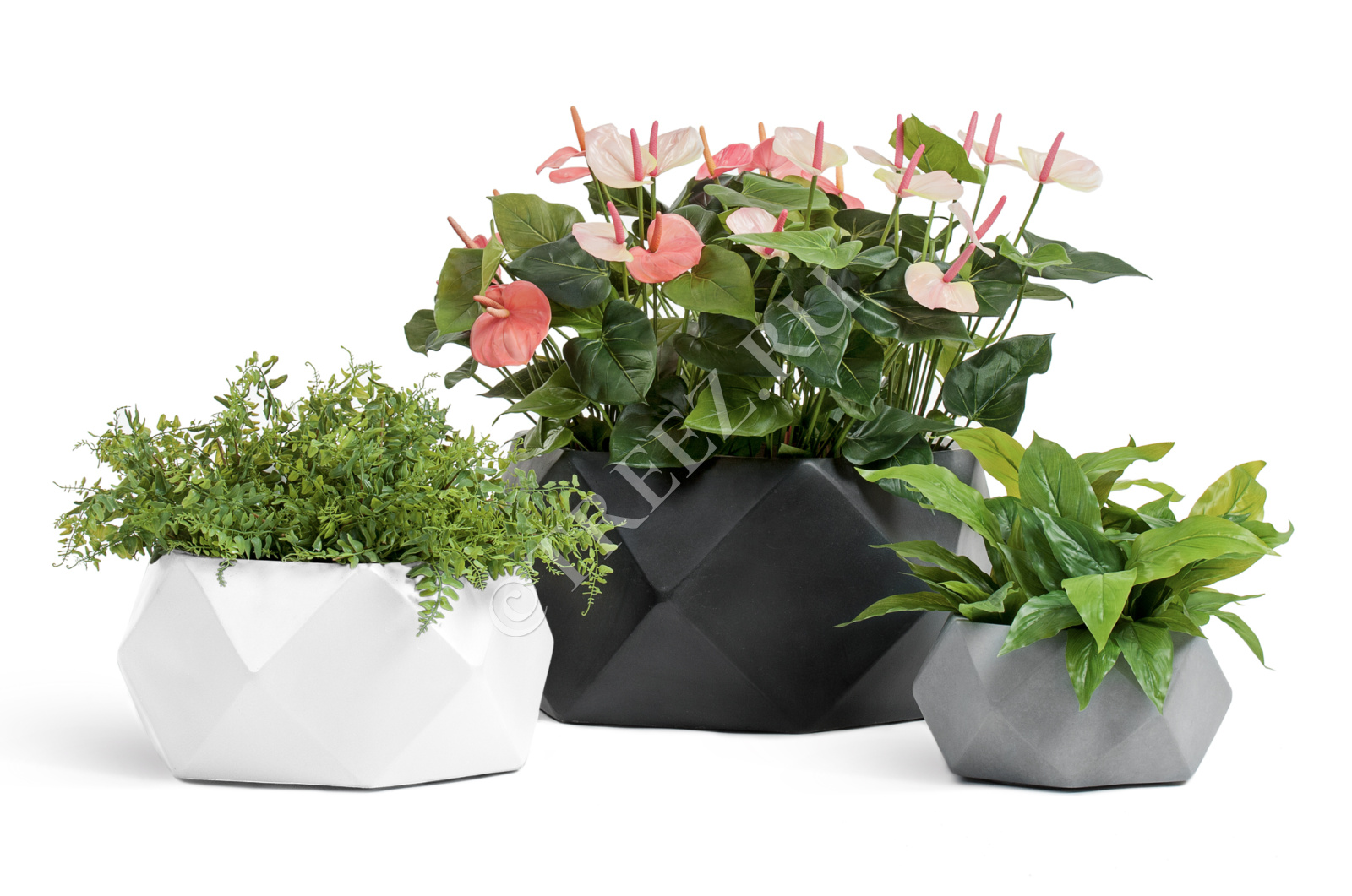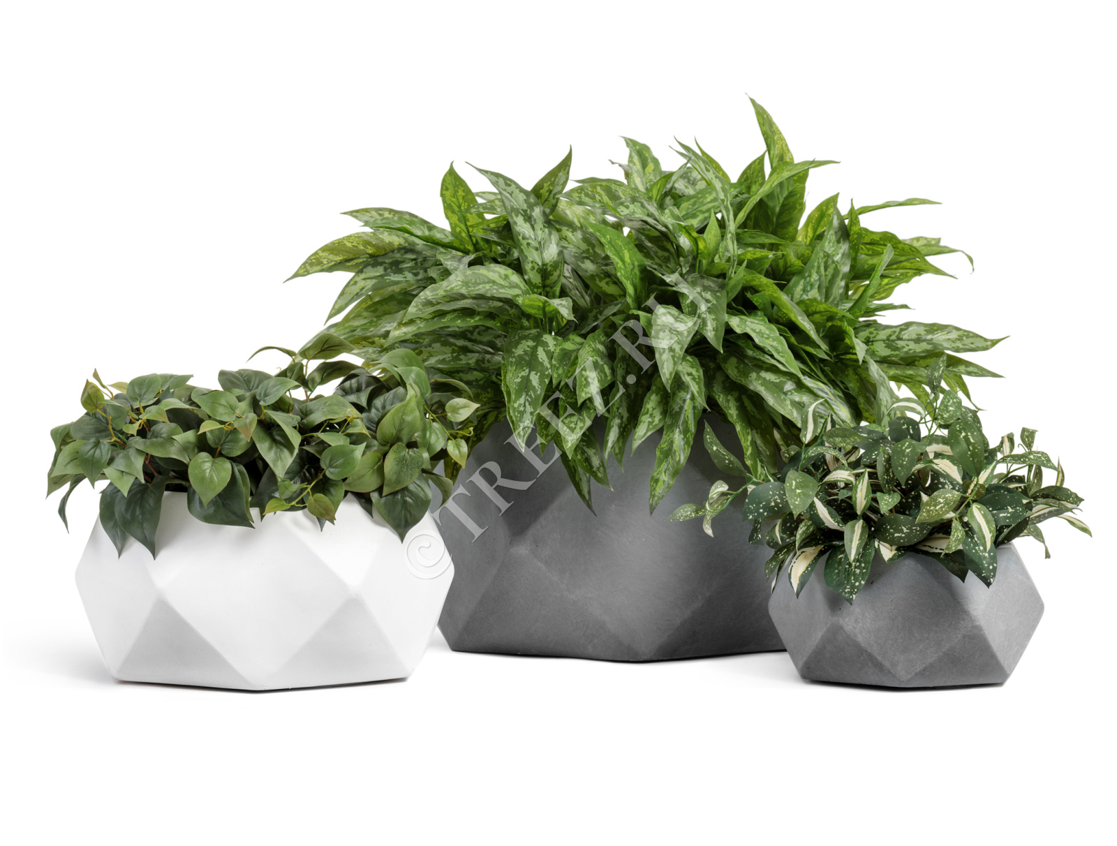 Кашпо TREEZ ERGO - Rombo - Низкая чаша-многогранник - Светло-серый камень