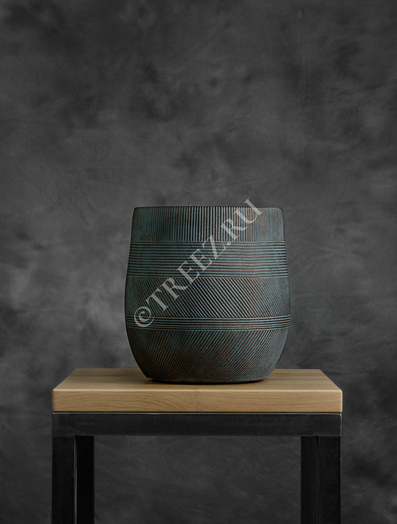 Кашпо TREEZ ERGO - Graphics - Высокая округлая чаша - Окись с медной патиной