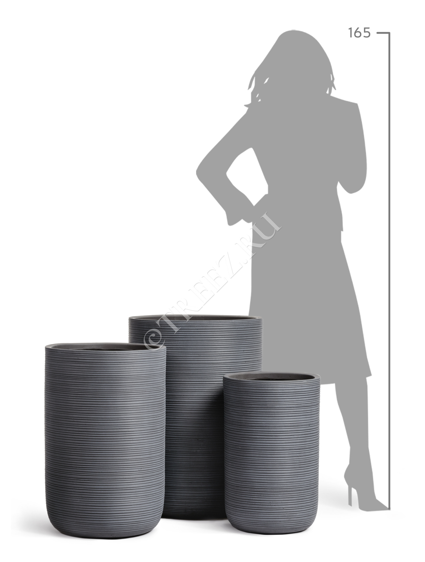 Кашпо TREEZ ERGO - TreeLine - Цилиндр - Дымчато-серый бетон