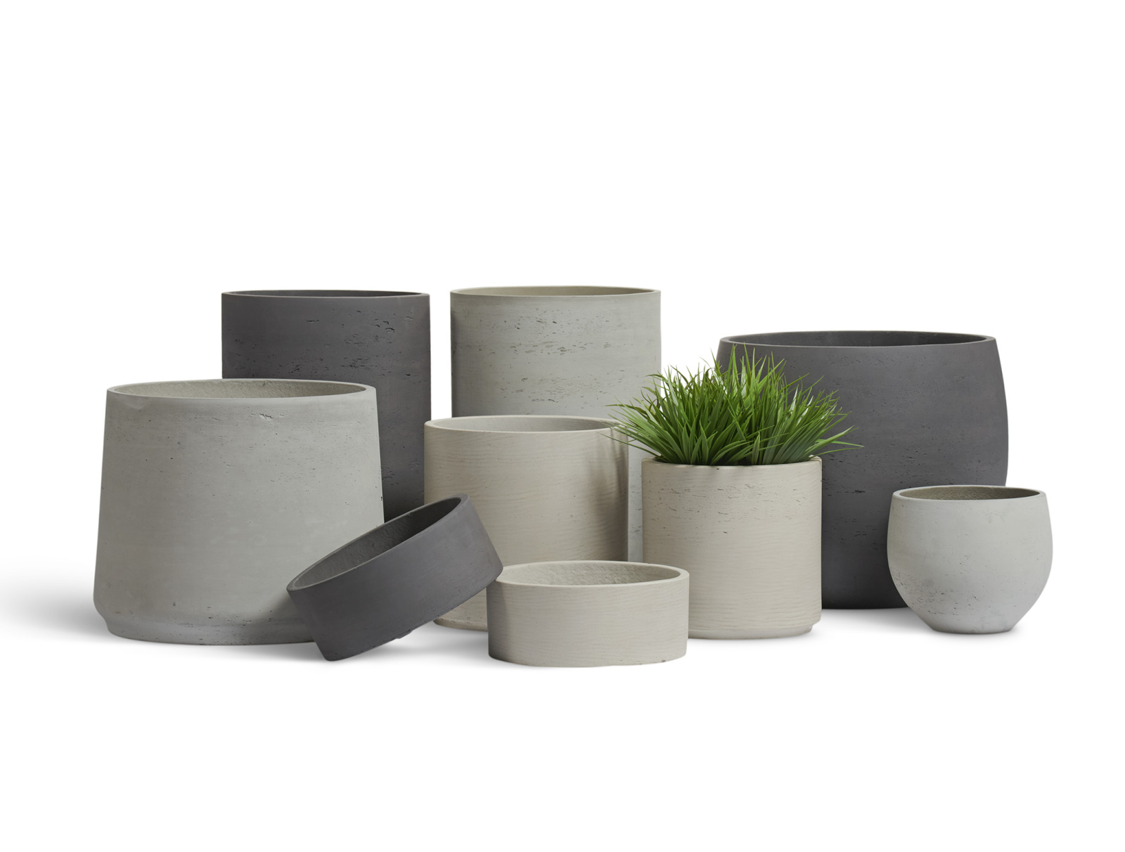Кашпо TREEZ Ergo серии Concrete - это демократичная, современная по форме и стилю коллекция. Основной материал, выбранный бельгийскими дизайнерами для этой коллекции, позволяющий создать качественно новые, современные, но доступные по цене кашпо - полибетон (композит - смесь бетона и полимерных смол). Полибетон воспроизводит все нюансы бетонных кашпо, но имеет значительно меньший вес и большую прочность. Поверхность кашпо полностью имитирует экстерьерный бетон, включая разнообразие текстуры и оттенков цвета на одном кашпо. Кашпо TREEZ Ergo Concrete могут быть прекрасно использованы для искусственных растений, их рекомендуется размещать на закрытых летних верандах и террасах, а также они могут занять достойное место при современном интерьерном озеленении.