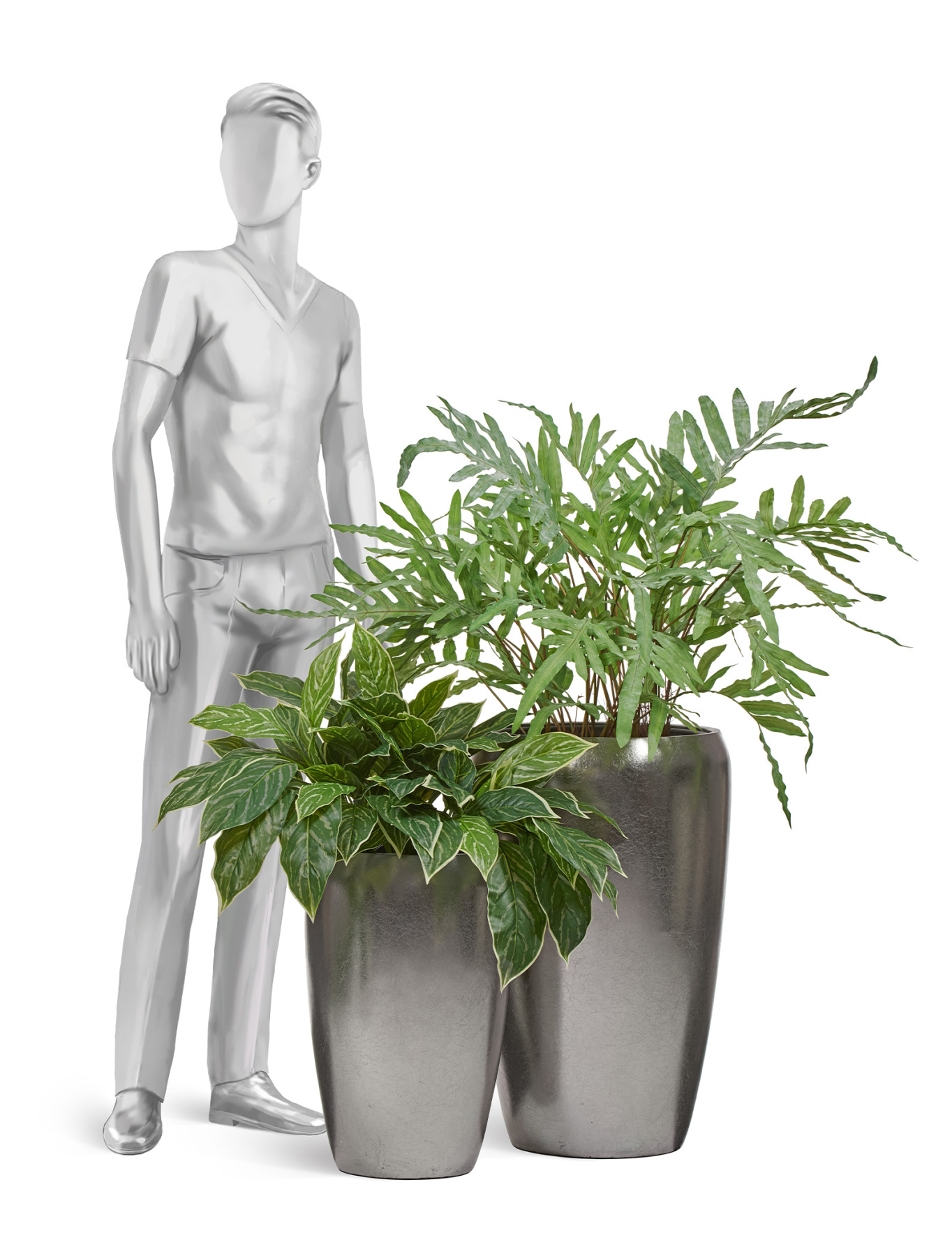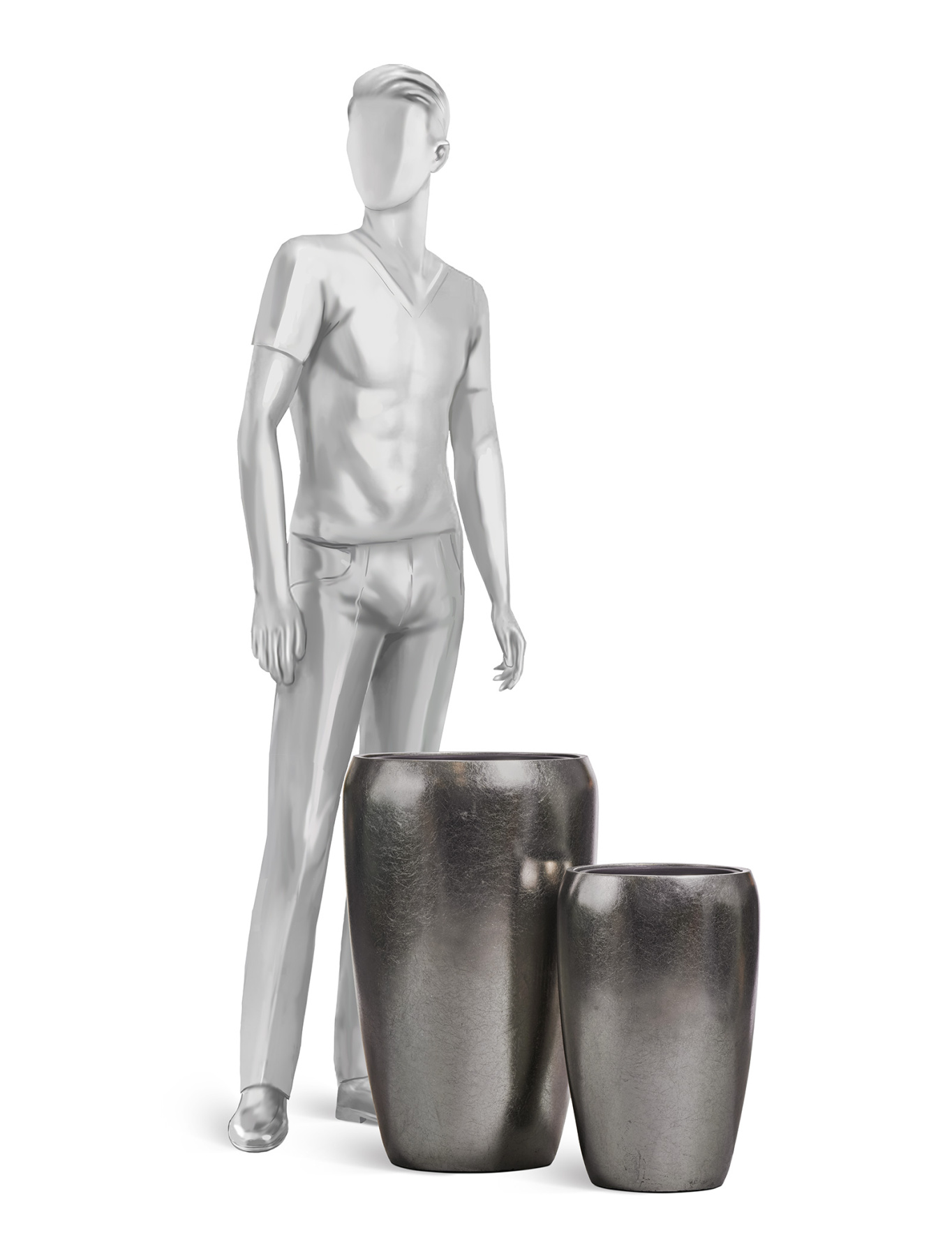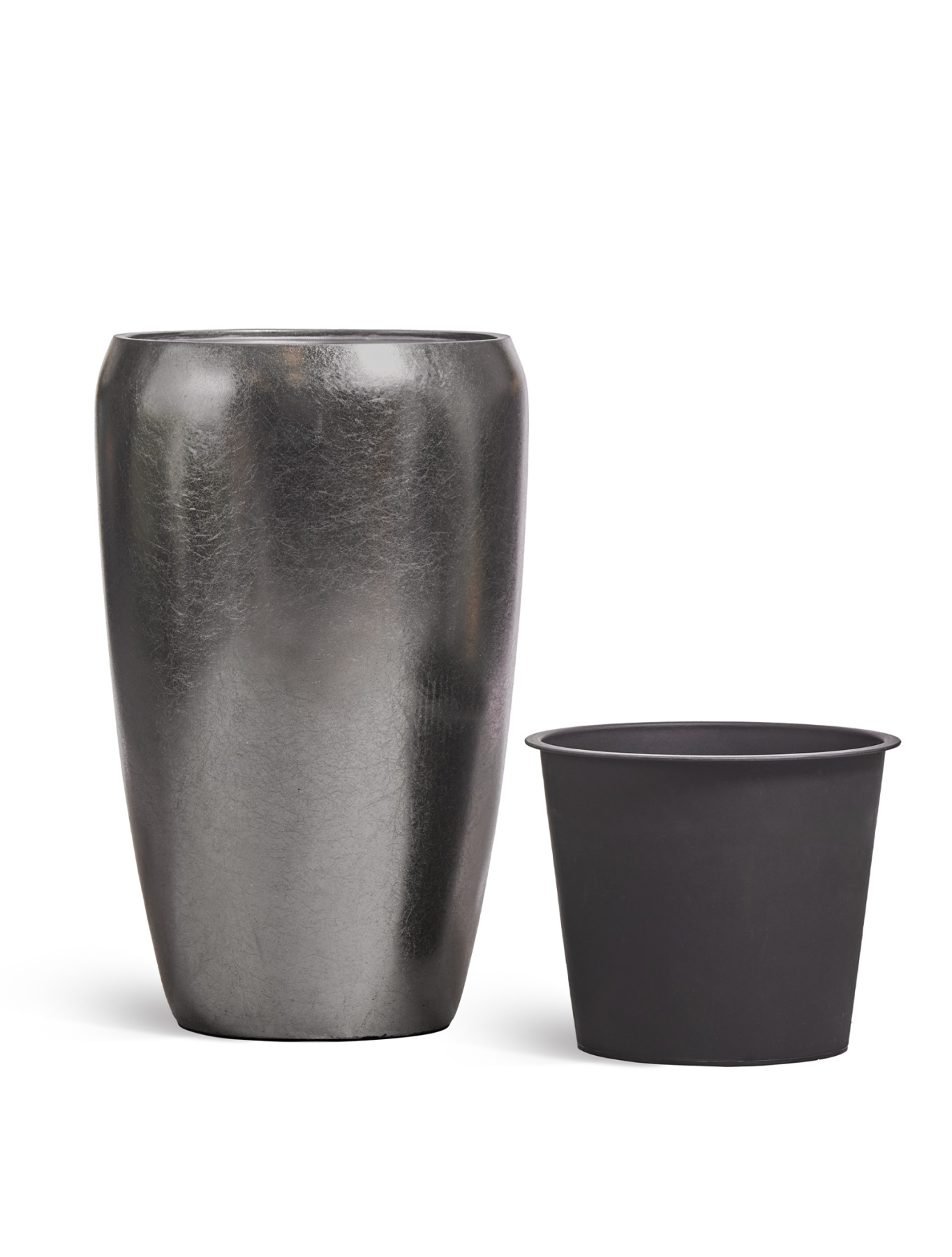Кашпо TREEZ Effectory - Metal - Высокий округлый конус - Серебро