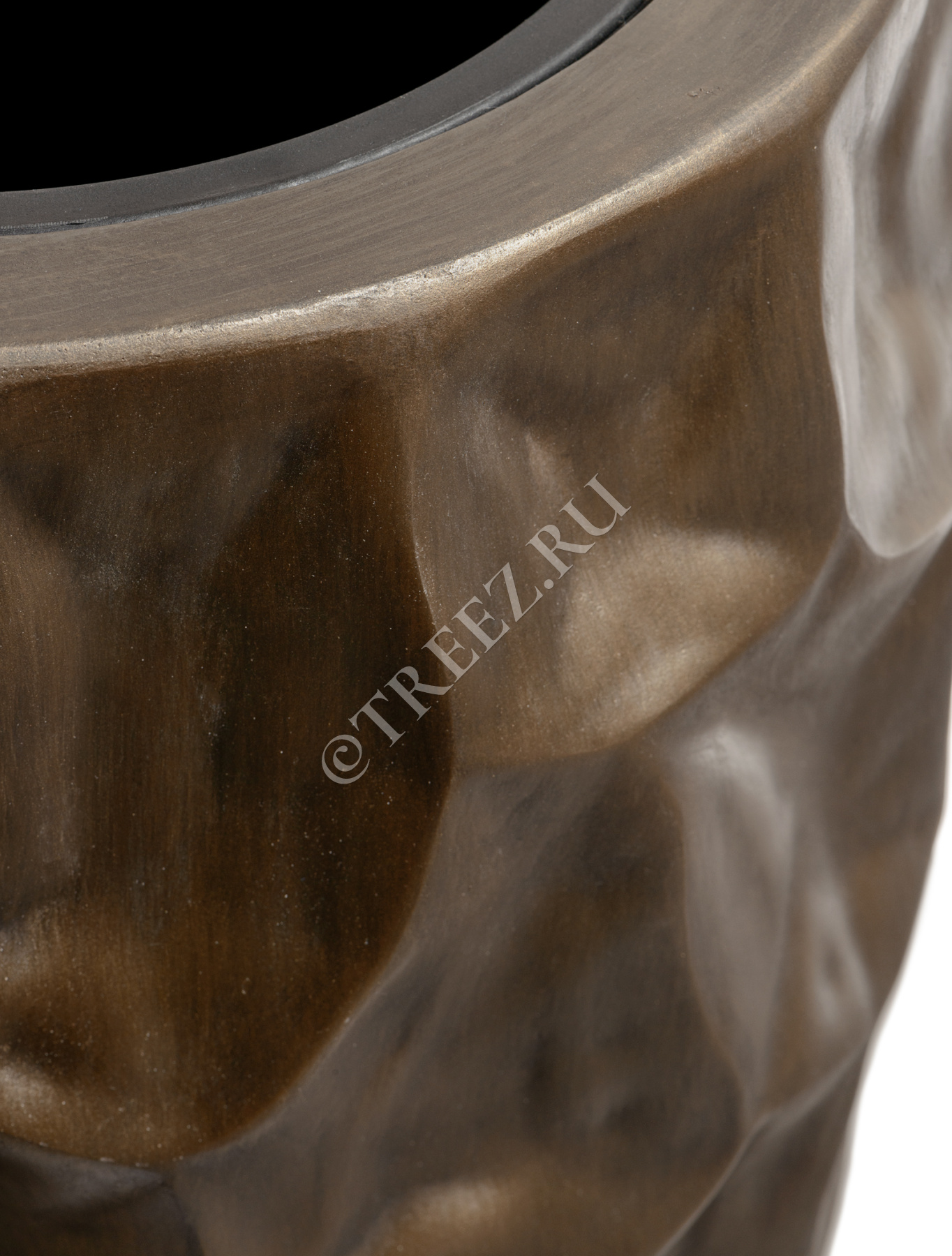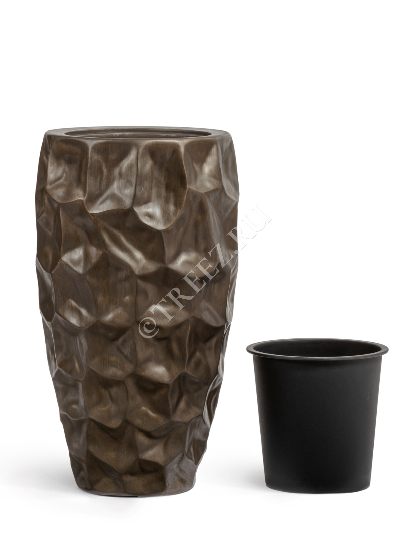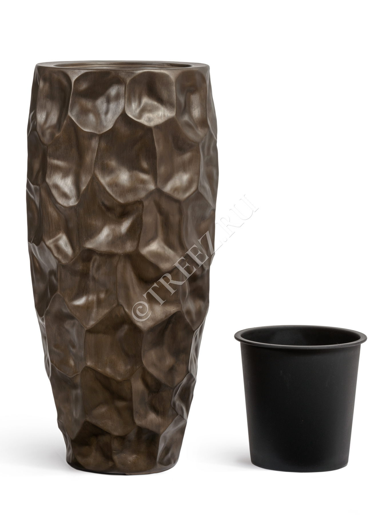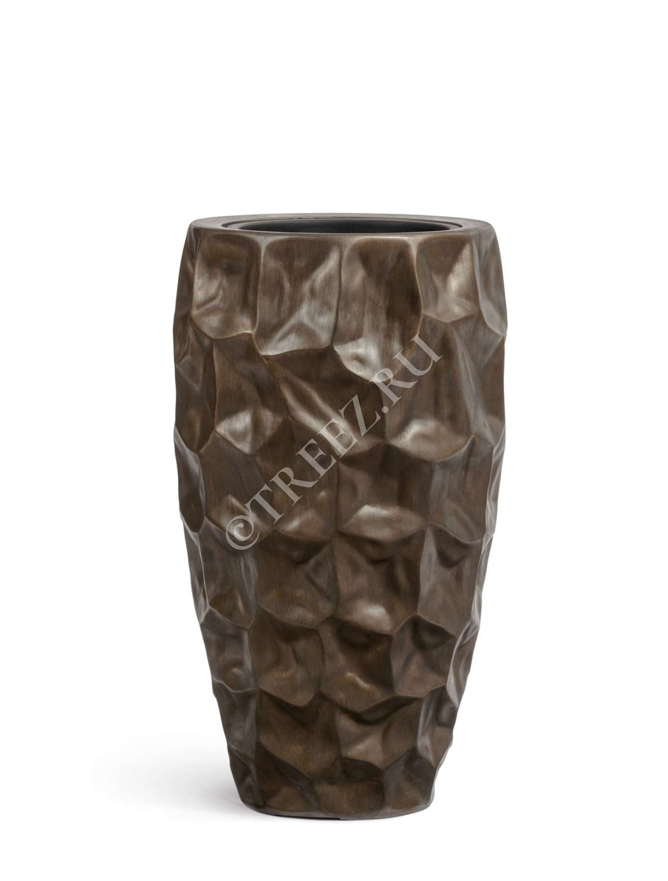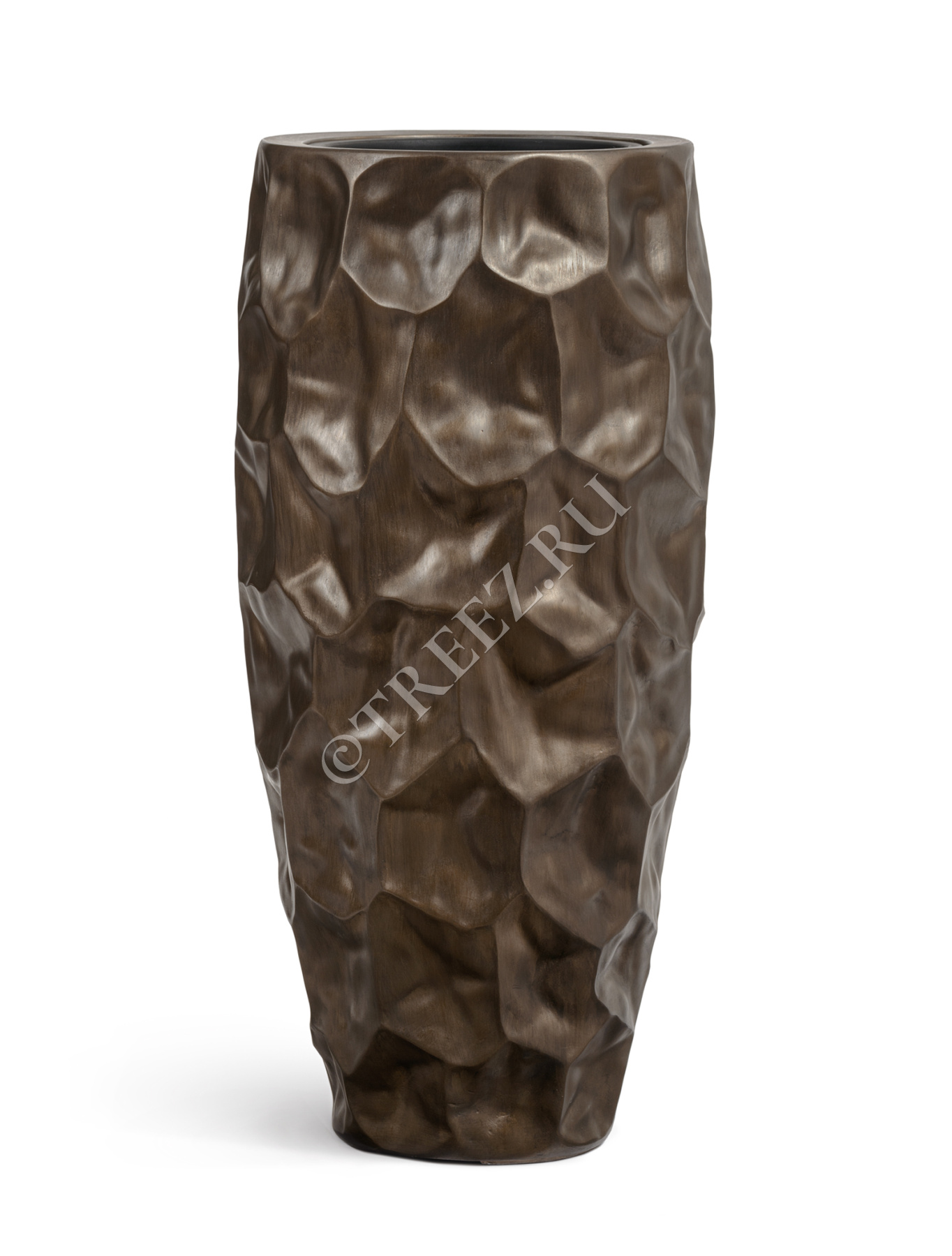 Кашпо TREEZ Effectory - Metal - Высокий округлый конус Design Crumple - Чернёная бронза