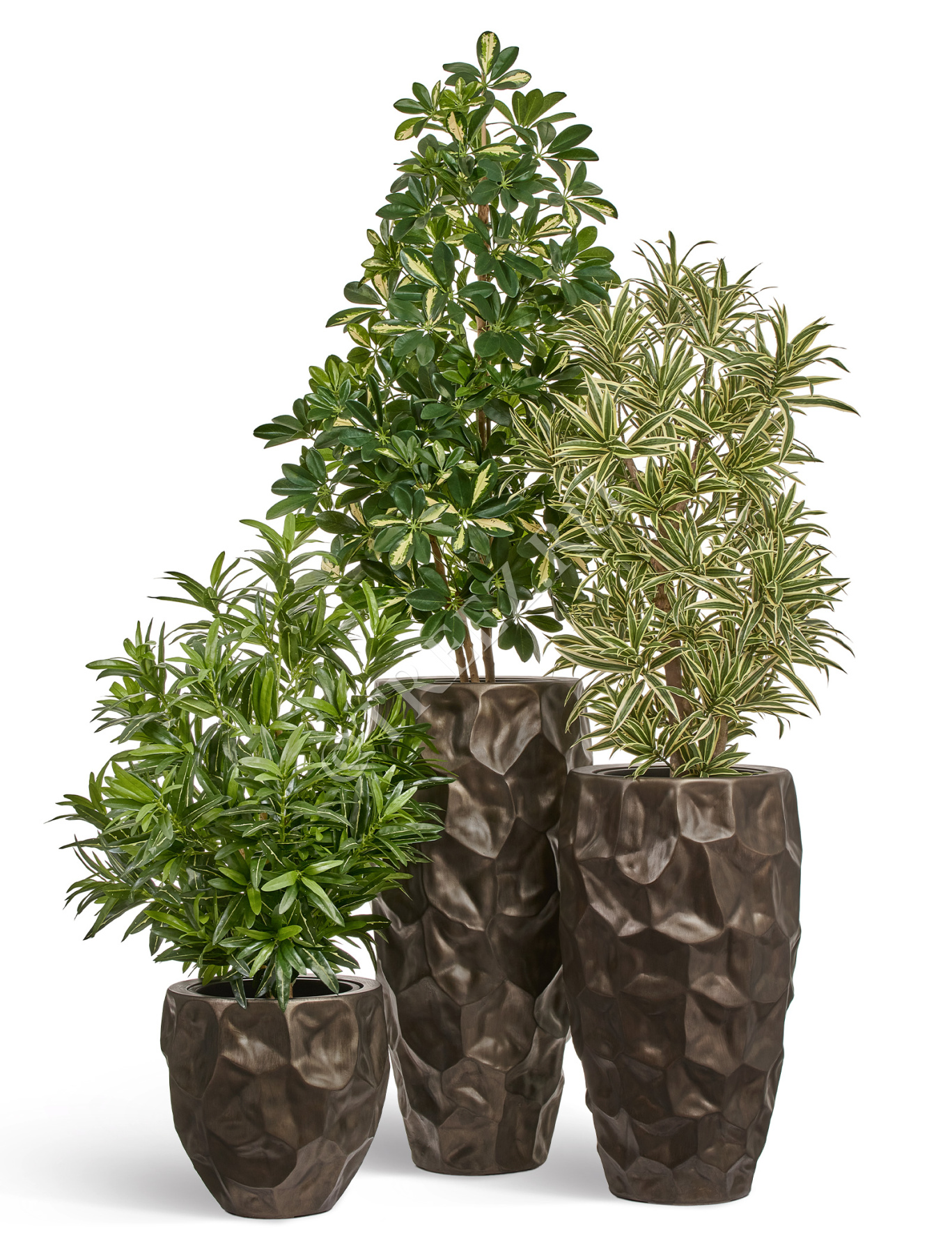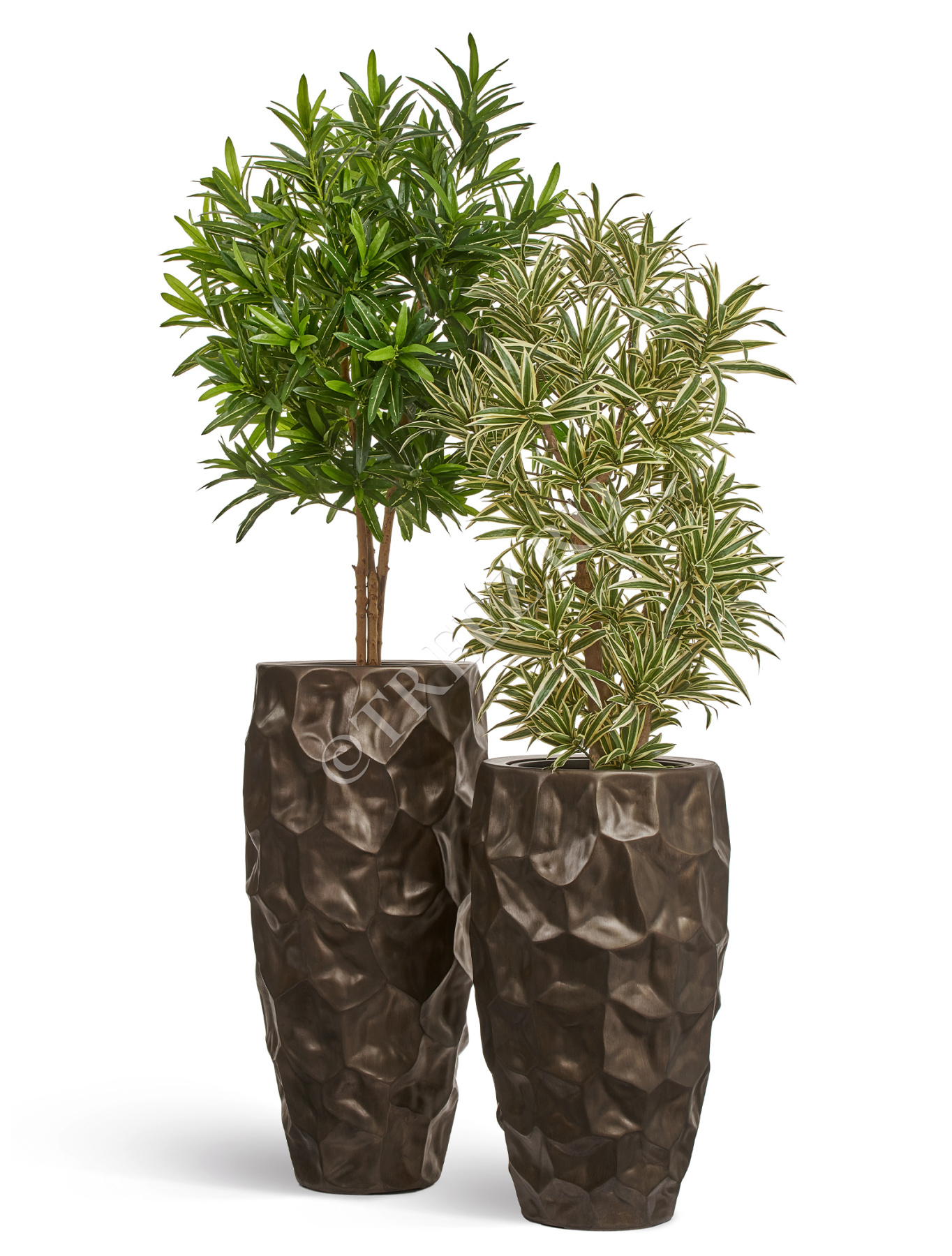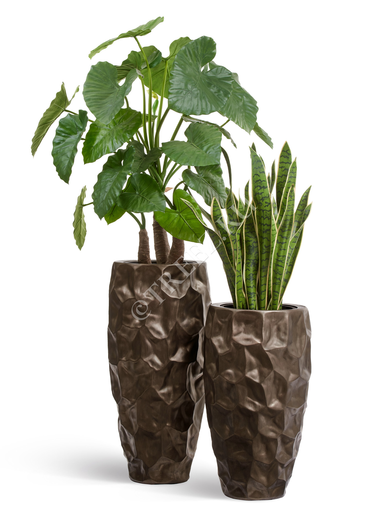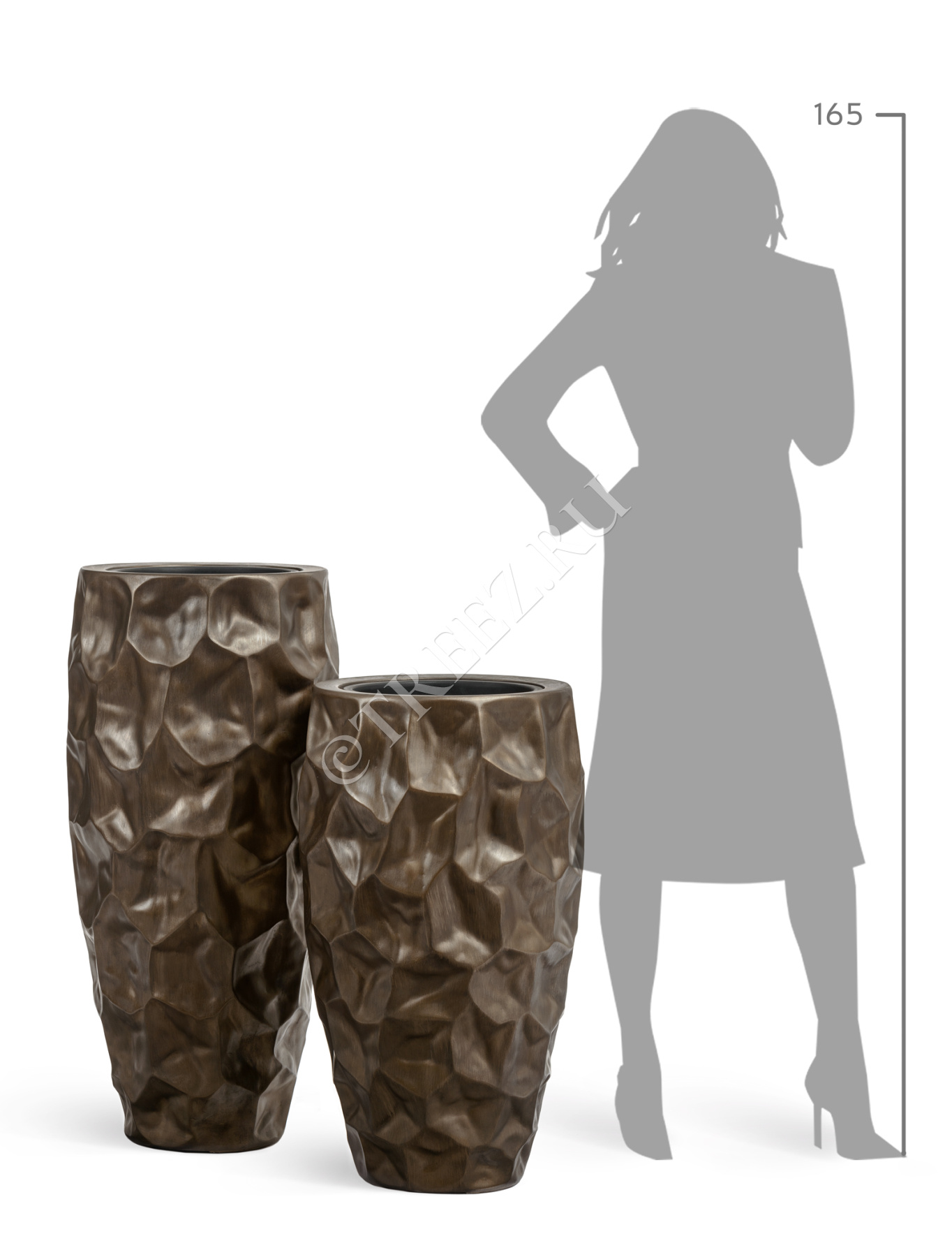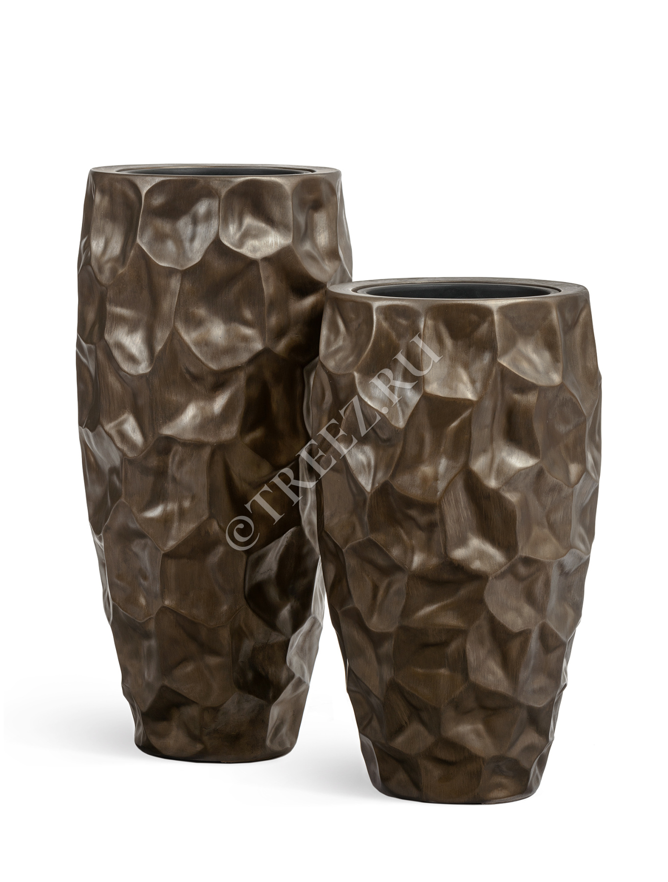 Кашпо TREEZ Effectory - Metal - Высокий округлый конус Design Crumple - Чернёная бронза
