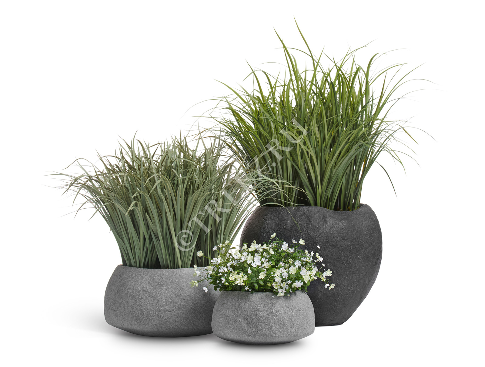 Кашпо TREEZ Effectory - Organic - Низкая чаша - Тёмно-серый камень