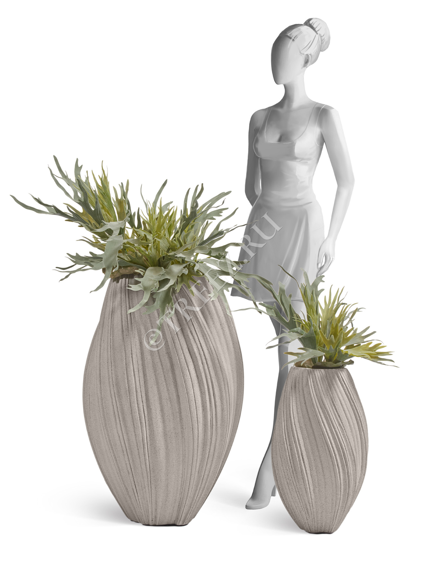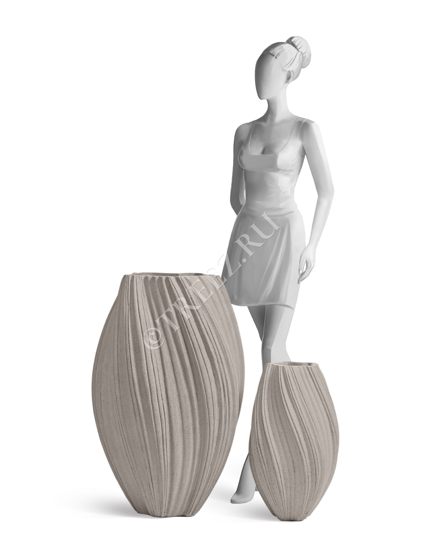 Кашпо TREEZ Effectory - Dune - Высокая Design-ваза - Дымчато-серый песок