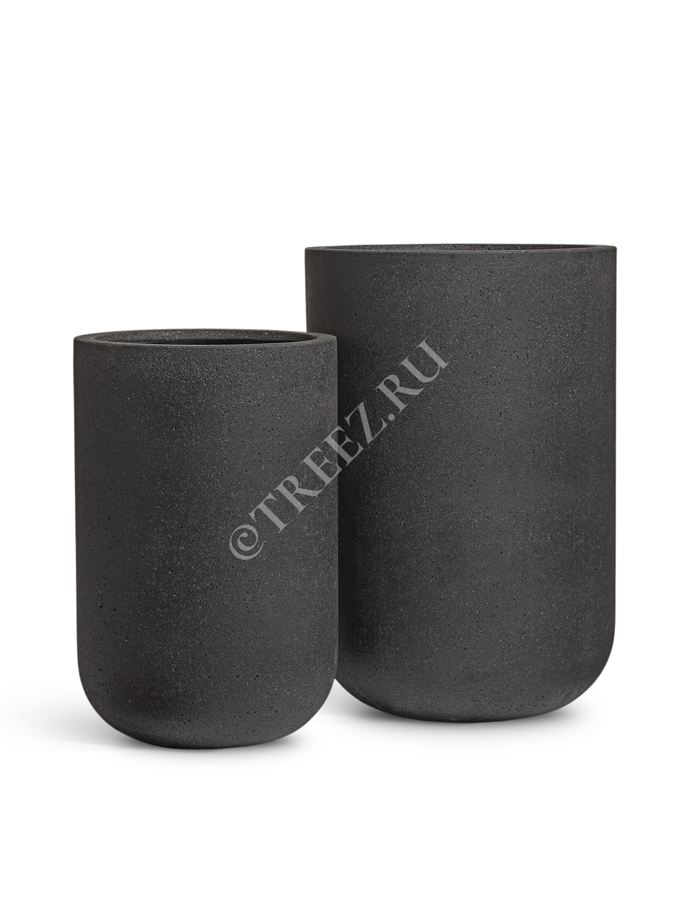 Кашпо TREEZ ERGO - Hard Rock - Высокий округлый цилиндр - Чёрный песок