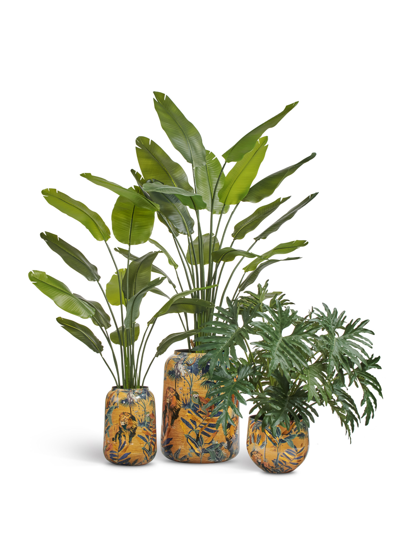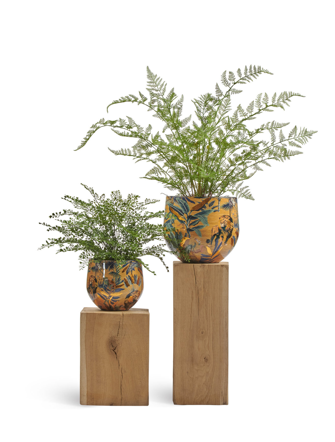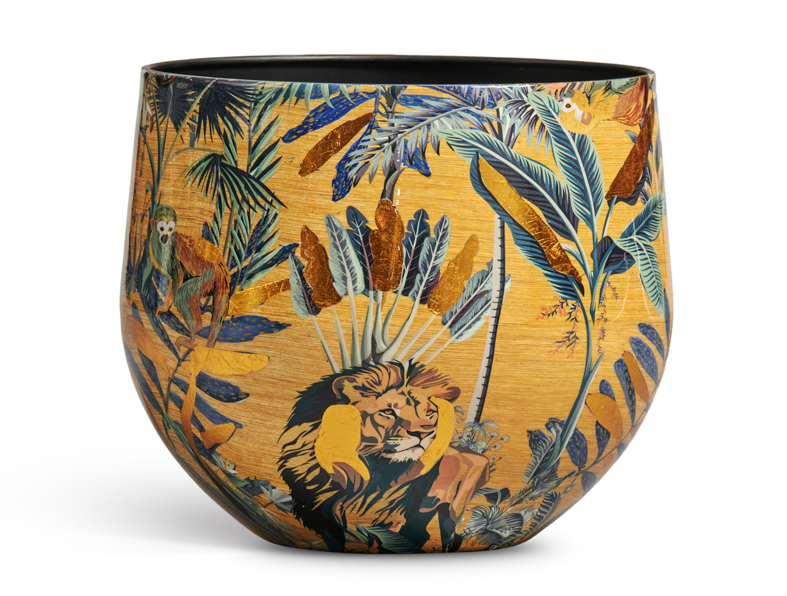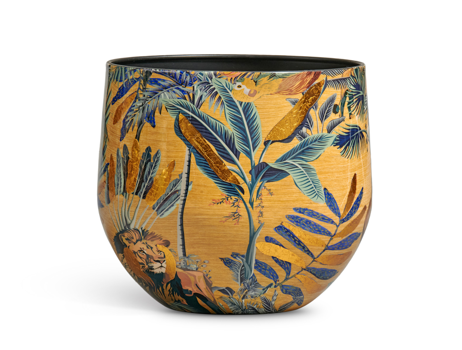 Кашпо коллекции Savage Garden созданы из настоящего металла и покрыты эффектной лаковой эмалью с трендовыми узорами и металлизированными украшениями рисунка.