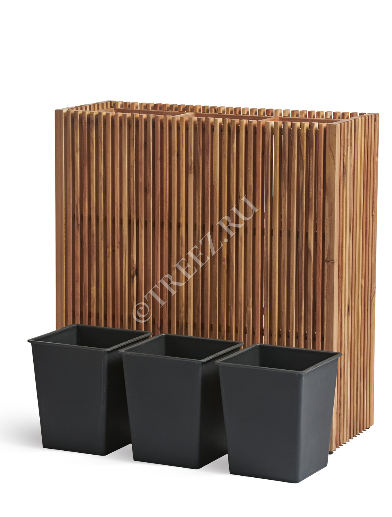 Кашпо Treez Effectory серии Timberline созданы из натуральной древесины тропической акации. Она отличается особой прочностью и не подвержена гниению.