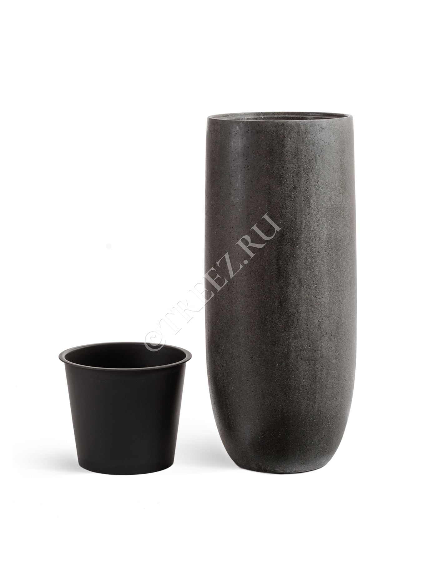 Кашпо TREEZ Effectory - Stone - Высокий округлый конус - Тёмно-серый камень