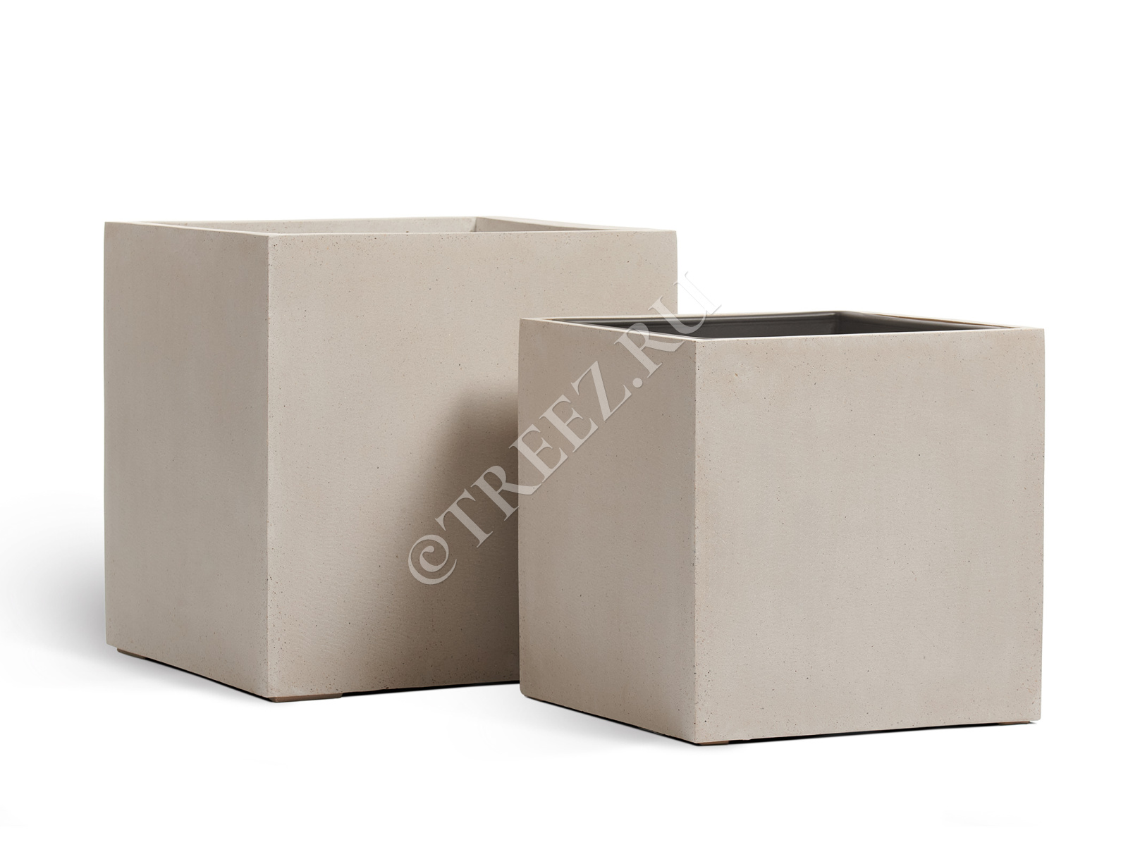 Кашпо TREEZ Effectory - Beton - Высокий куб - Белый песок