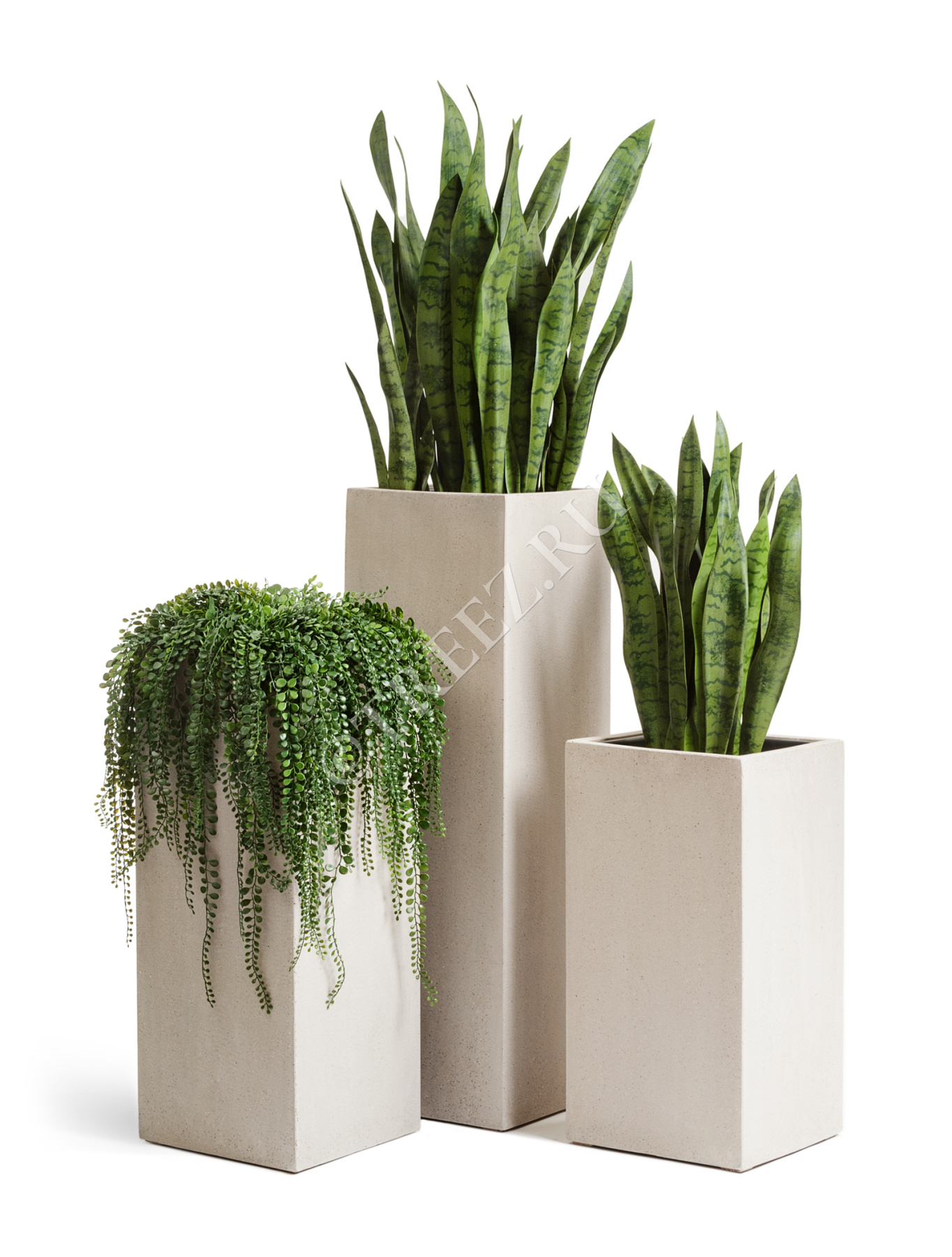 Кашпо TREEZ Effectory - Beton - Высокий куб - Белый песок