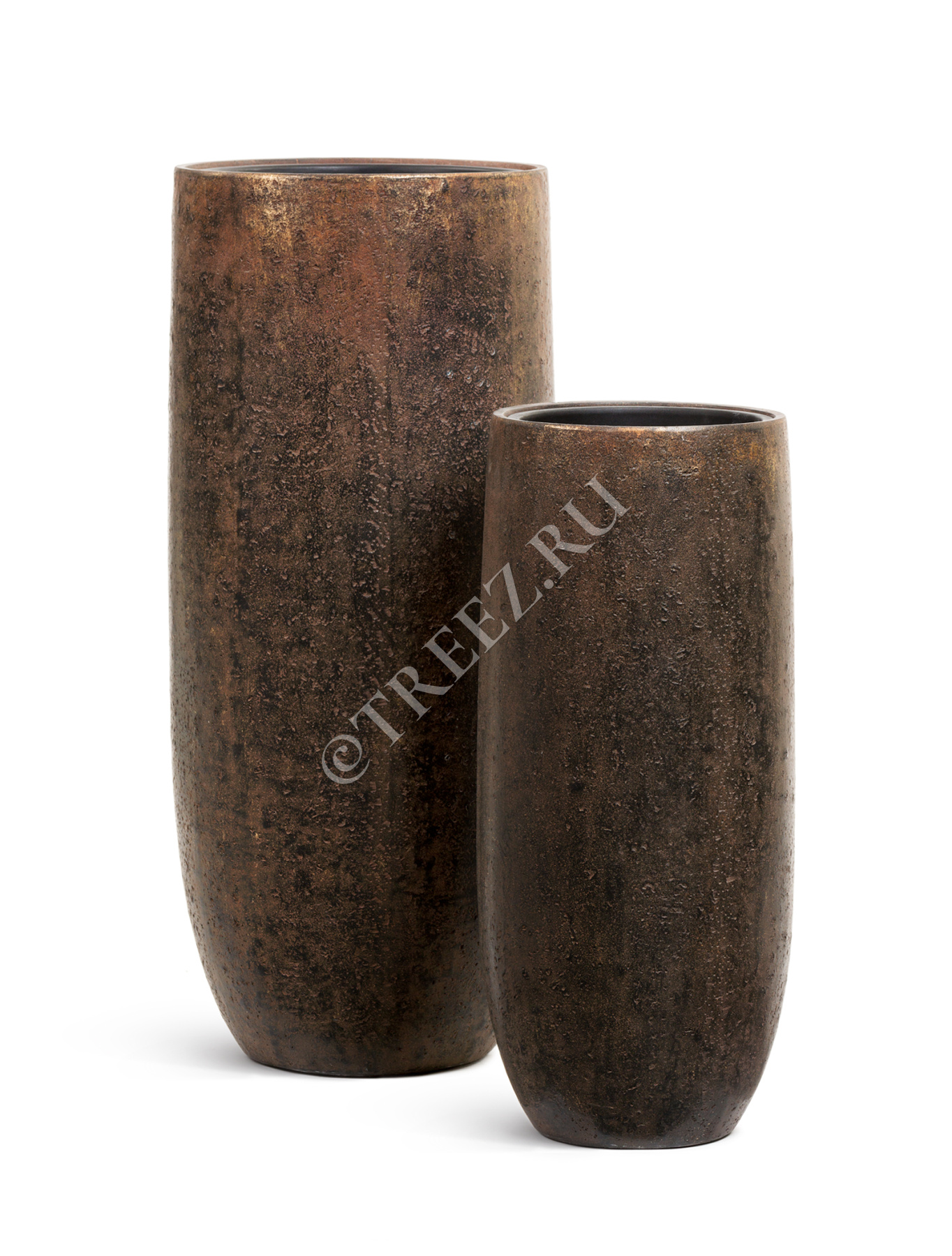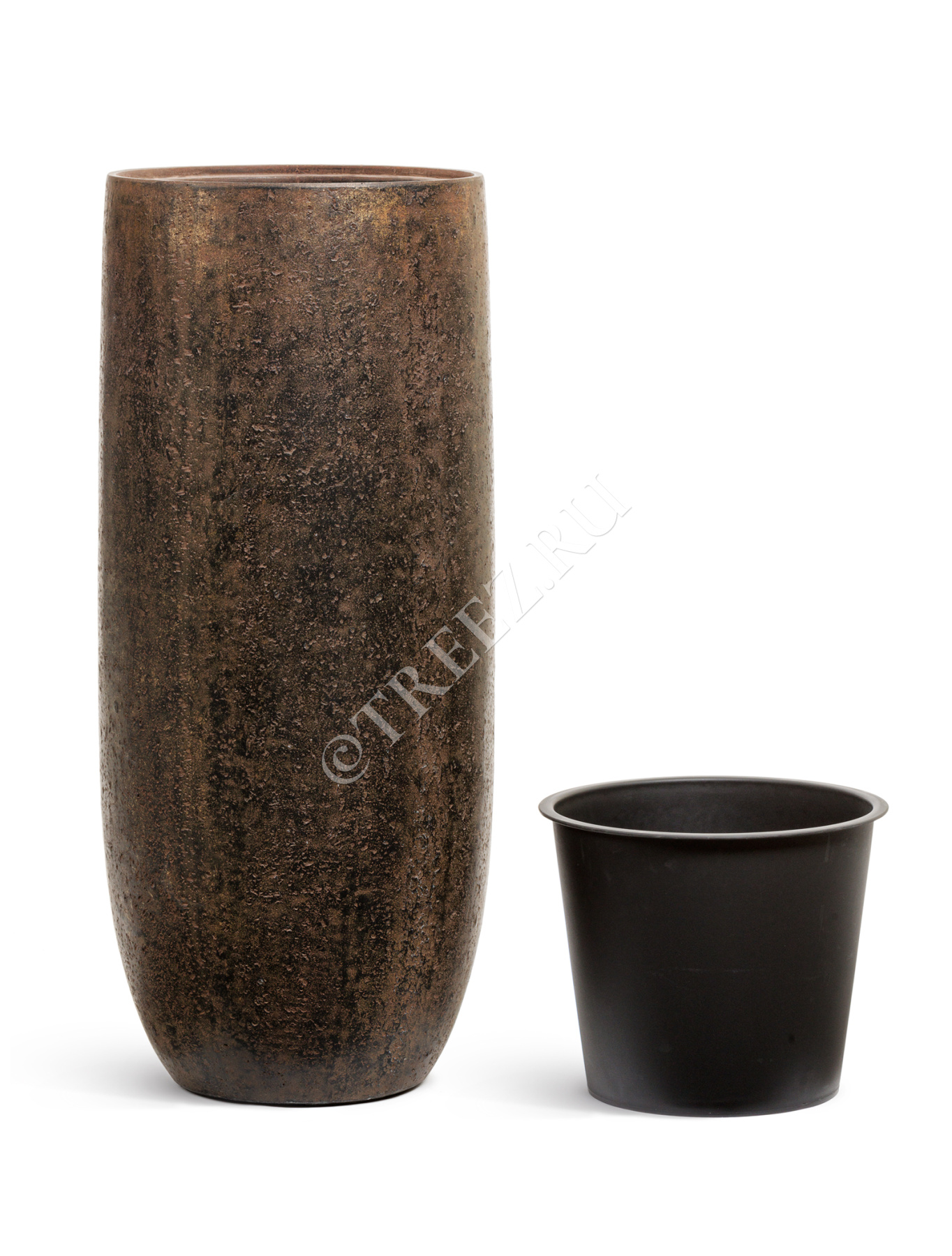 Кашпо TREEZ Effectory - Metal - Высокий округлый конус Design Crumple - Чернёная бронза