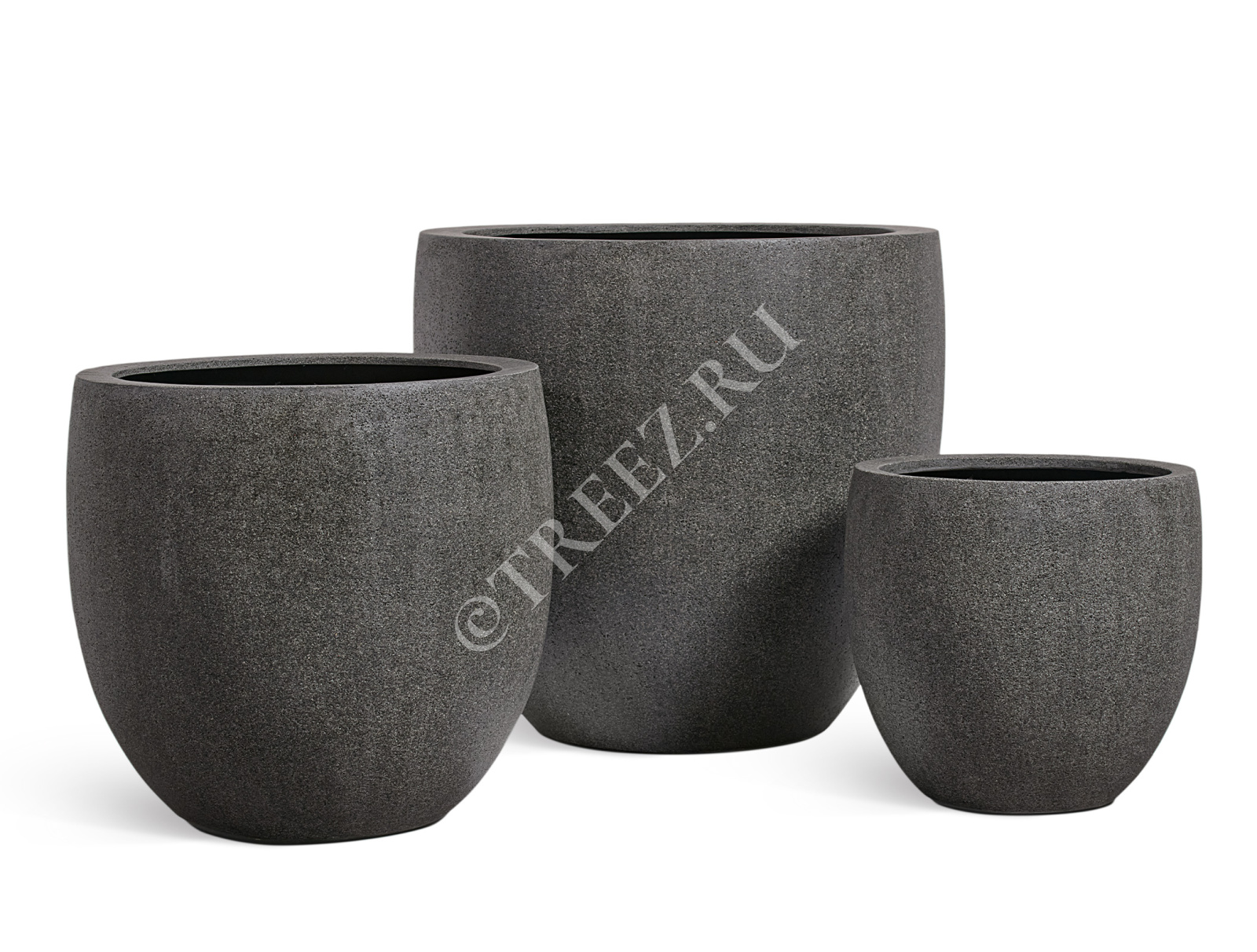 Кашпо TREEZ Effectory - Stone - Большой округлый конус - Тёмно-серый камень