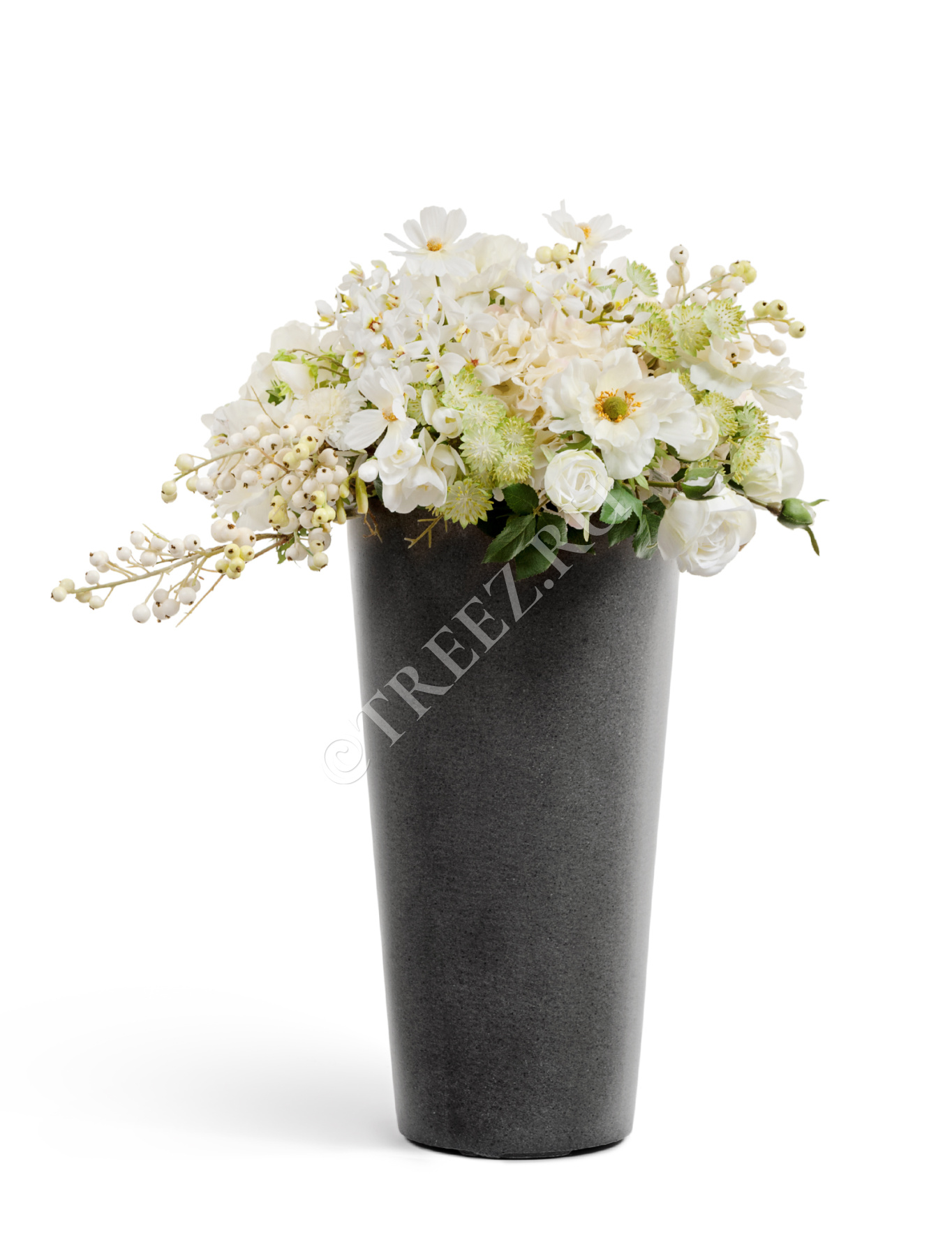 Кашпо TREEZ Effectory - Beton - Высокий округлый конус - Белый песок