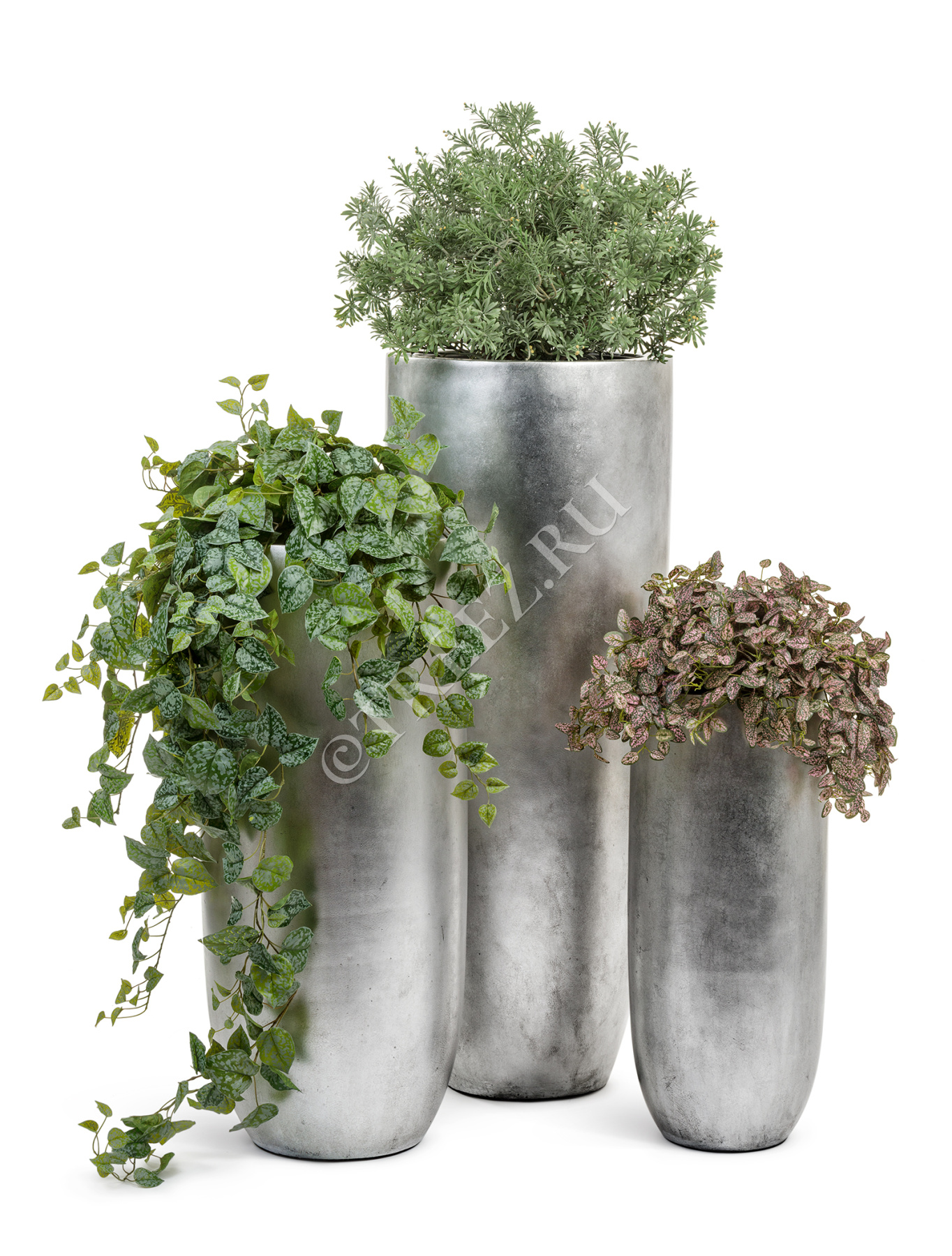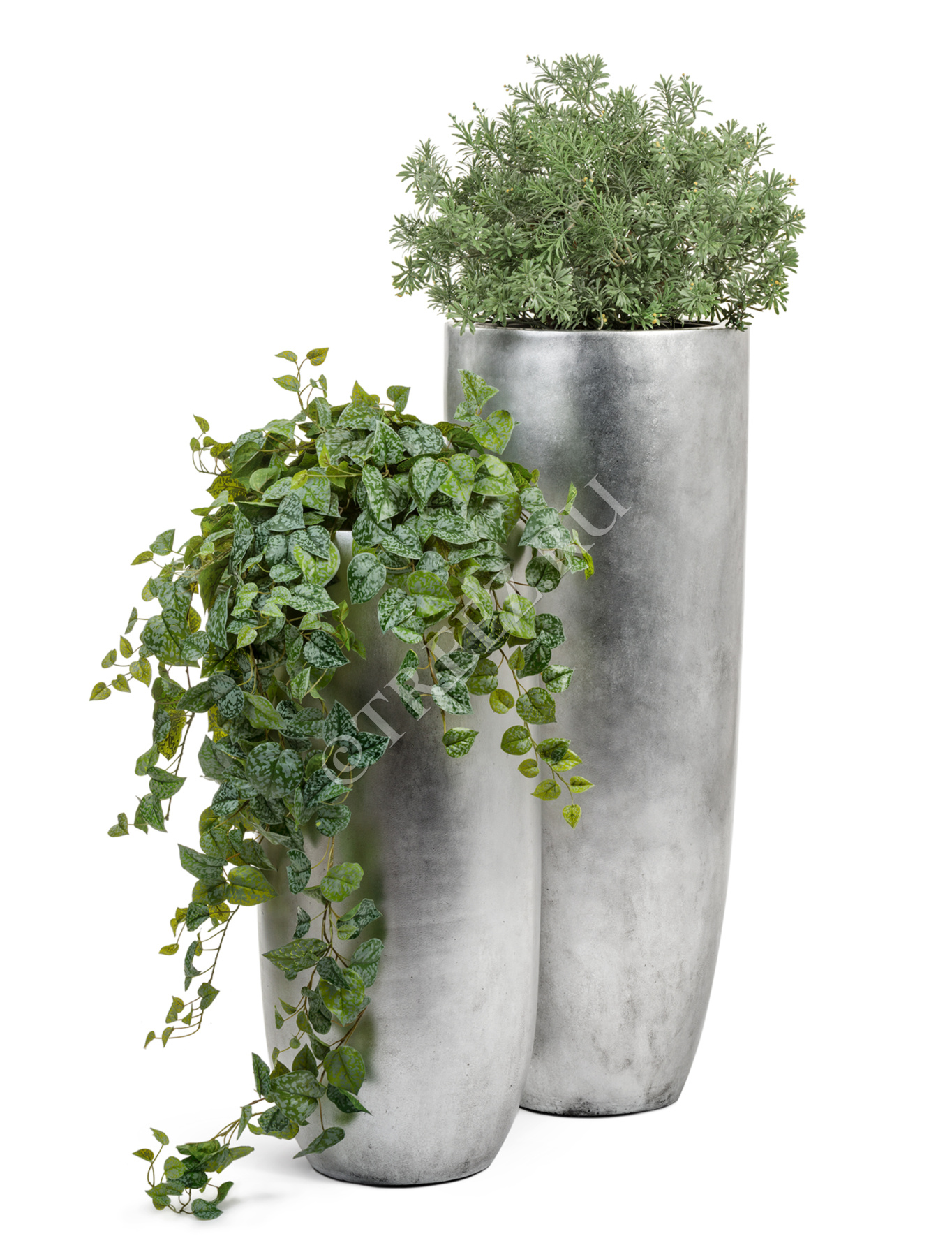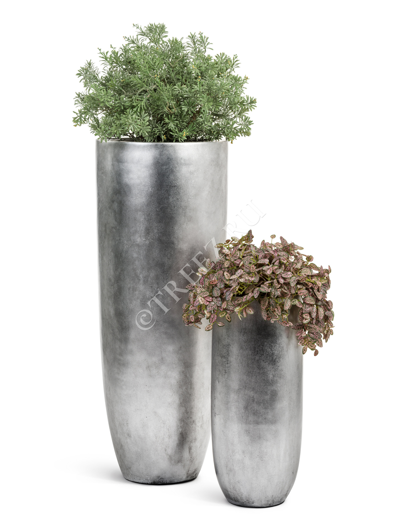 Кашпо TREEZ Effectory - Metal - Высокий округлый конус - Стальное серебро