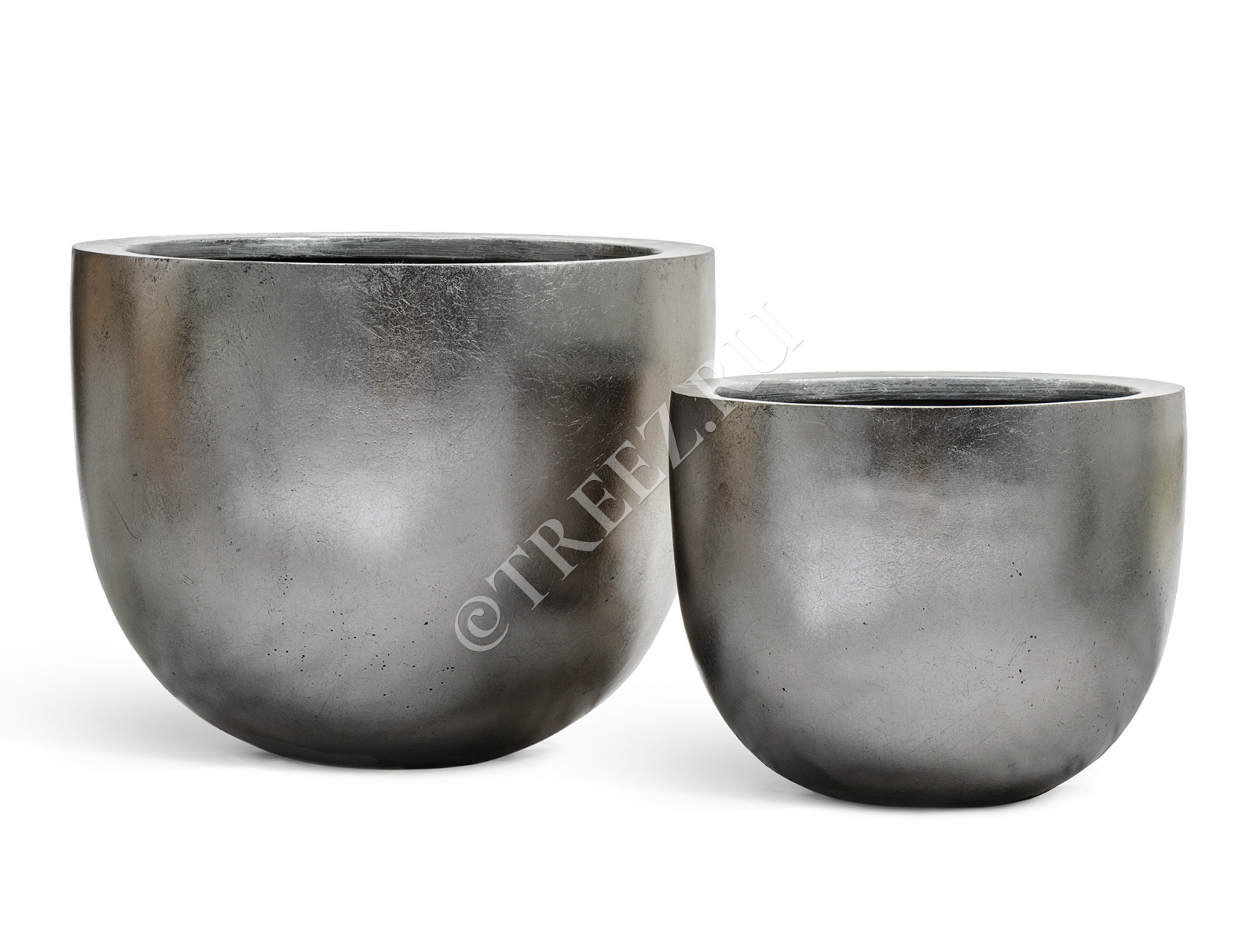 Кашпо TREEZ Effectory - Metal - Низкая конус-чаша - Стальное серебро