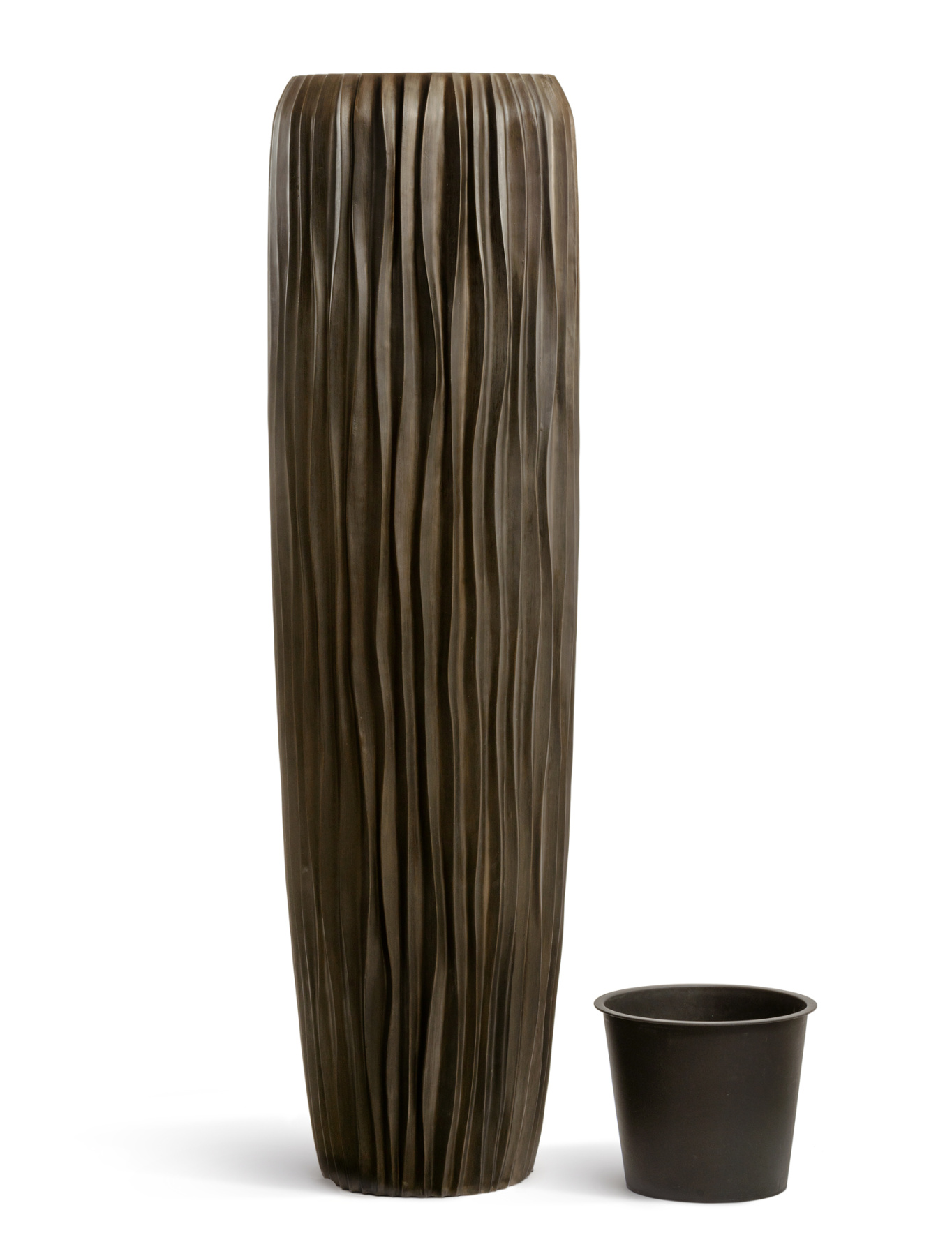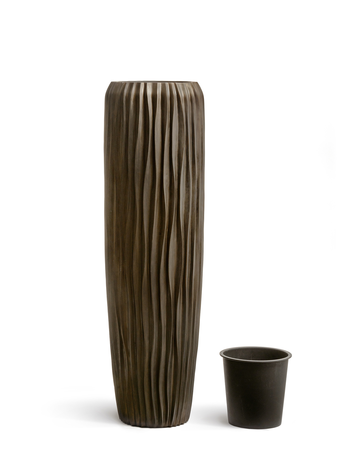 Кашпо TREEZ Effectory - Metal - Высокий конус Giant Design Wave - Чернёная бронза