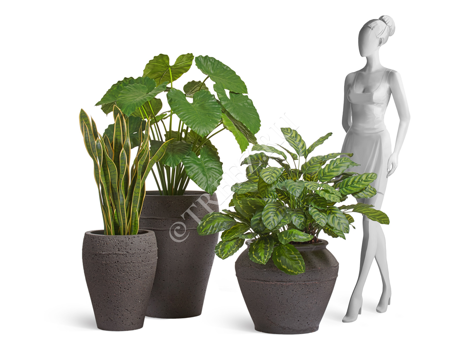 Сет № 63 - Композиция с Алоказией и Калатеей в кашпо Treez Ergo Nero